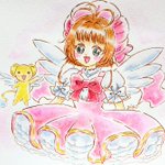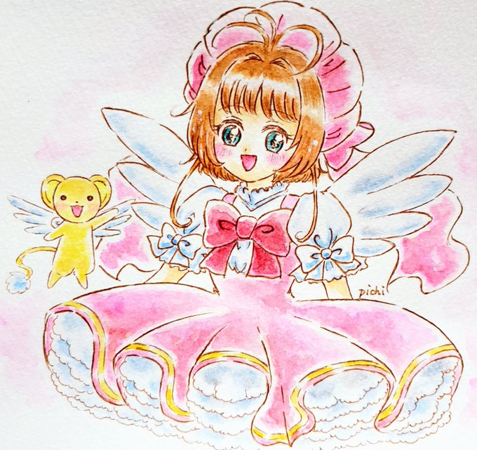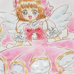#私の絵柄で見てみたいキャラっていますか カードキャプターさくら🌸 完成しました!わかりにくいけど目、羽根、スカートのフリルを顔彩でキラキラにしてみた…🖌️♡2枚目なんとなく伝わるかな? リクエストありがとうございました❣️