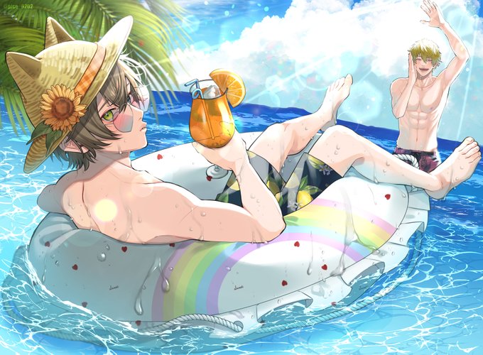 プール開きでの国際男子達がめっちゃ楽しそうで見てるこっちも楽しかった!!!!素敵な時間をありがとう☺️ had a very good time! Thank you☺️ #にじさんじサマープール #HaYun_Art #suha_art #Briskart #drawluca #長尾百景