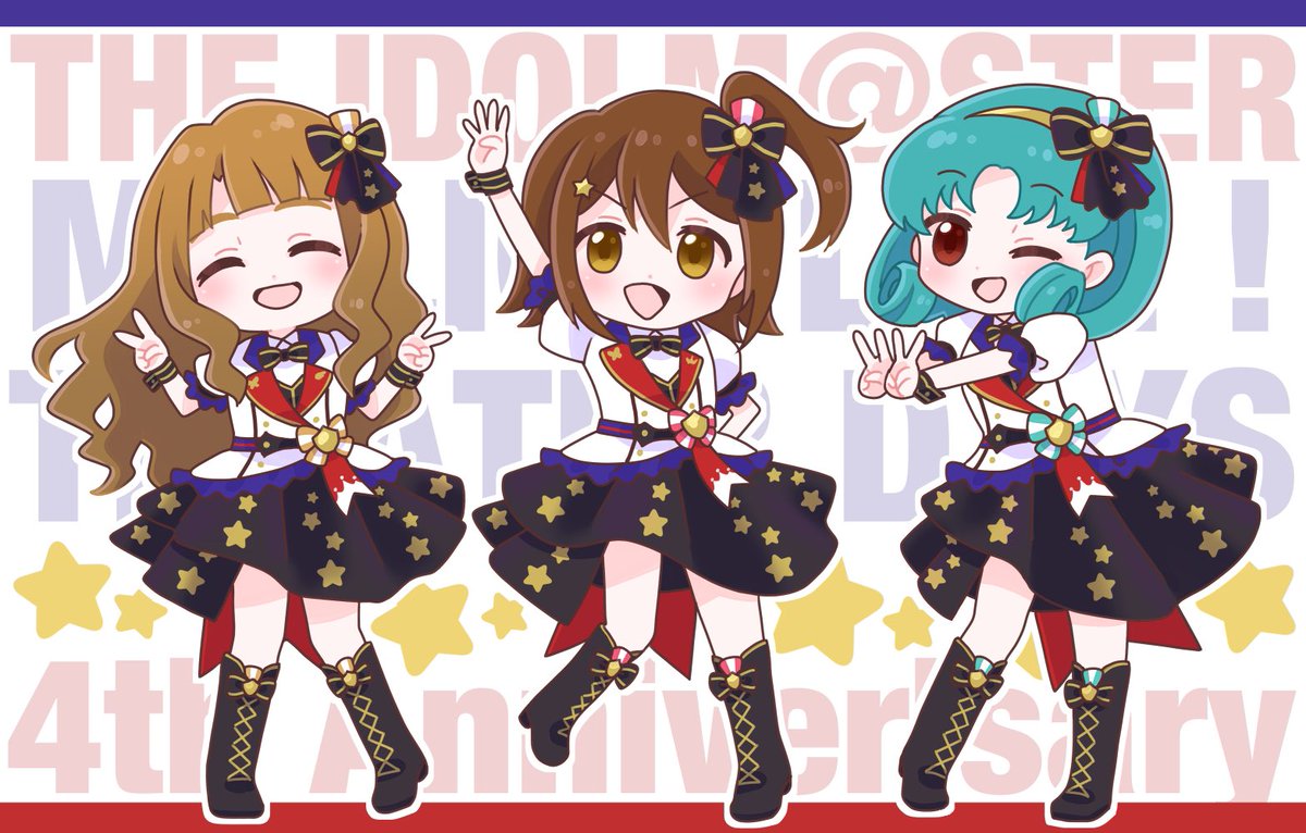 今更ながらミリシタ4周年おめでとう絵🎉 ダイヤモンドで揃ってるタウラスで🌟 #ミリシタ4周年