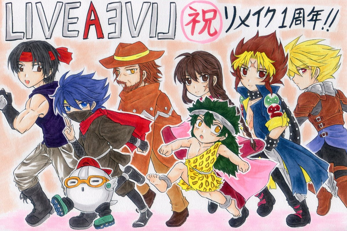 ライブアライブ、リメイク発売一周年おめでとうございます! ささやかですが記念イラストです。 並び順はリメイクでのシナリオクリア順です。 まだまだ遊べるの嬉しい♪