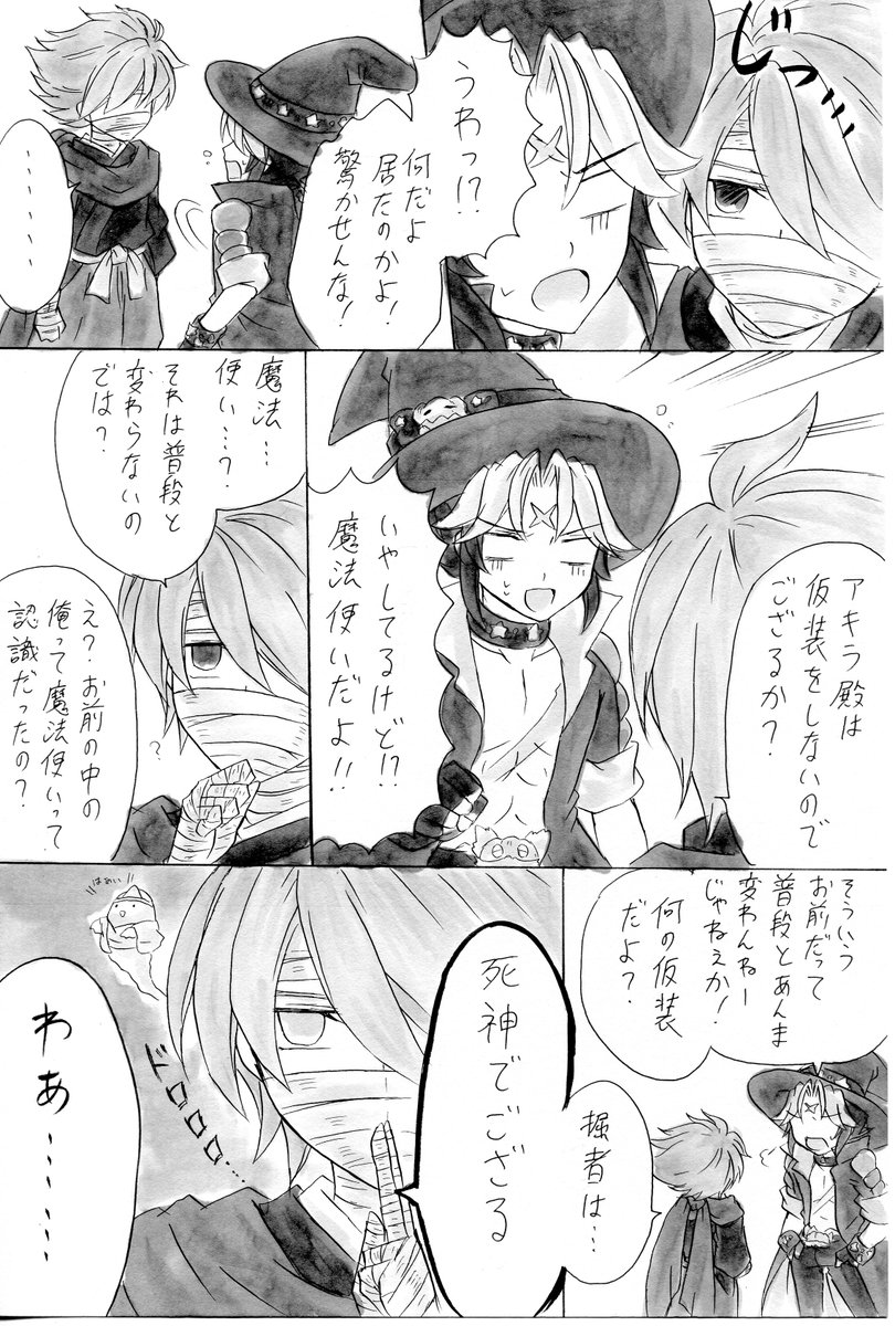 ライブアライブ、ハロウィンネタ漫画。 ノリと勢いで描きました。全6ページ、リプライに続きます。 #ライブアライブ