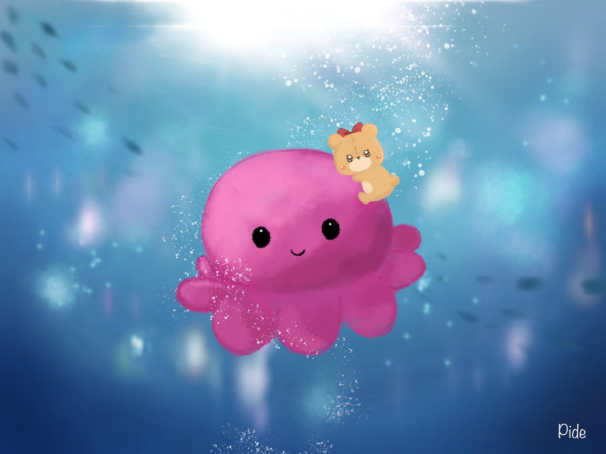 久しぶりの妹ちゃんとぷかぷか🐙🎀 #イラスト #落書き #絵