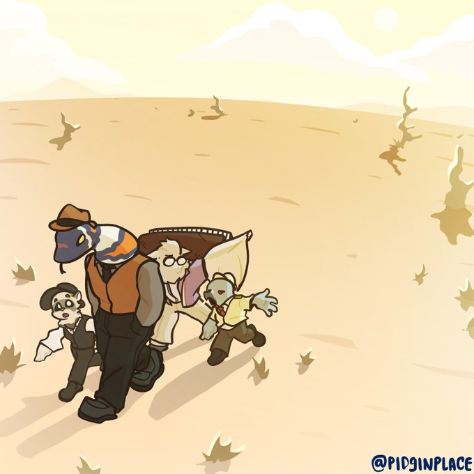 #inktober2022 Day 2... Or I guess my own #oc-tober works as well. "Lost" A band of spirits wandering the countryside of early 20th century America. My character is Eli, the little ferret guy down there... Part of a campaign ran by @Mikiib4!