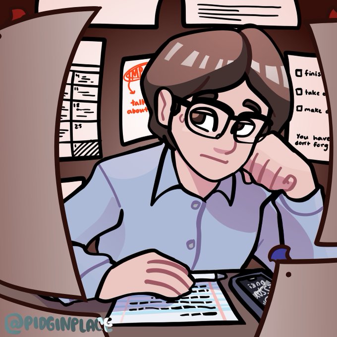 Day 6 of #inktober2022 is Work... Being trapped in the monotonous cycle of... Well. Work. The OC in question is Faust... Someone on the top who is just. A tad bit tired of it all. Poor guy. ...This wont be the last we see of him though.