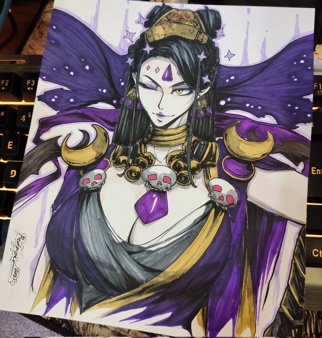 Day 5: Nyx - Hades I'm spent, my markers are clinging to its last ink lmao 😂 #arttrober2021 #inktober2021 #Inktober #nyx #hades #HadesGame #HadesFanArt #game #fanart #drawing