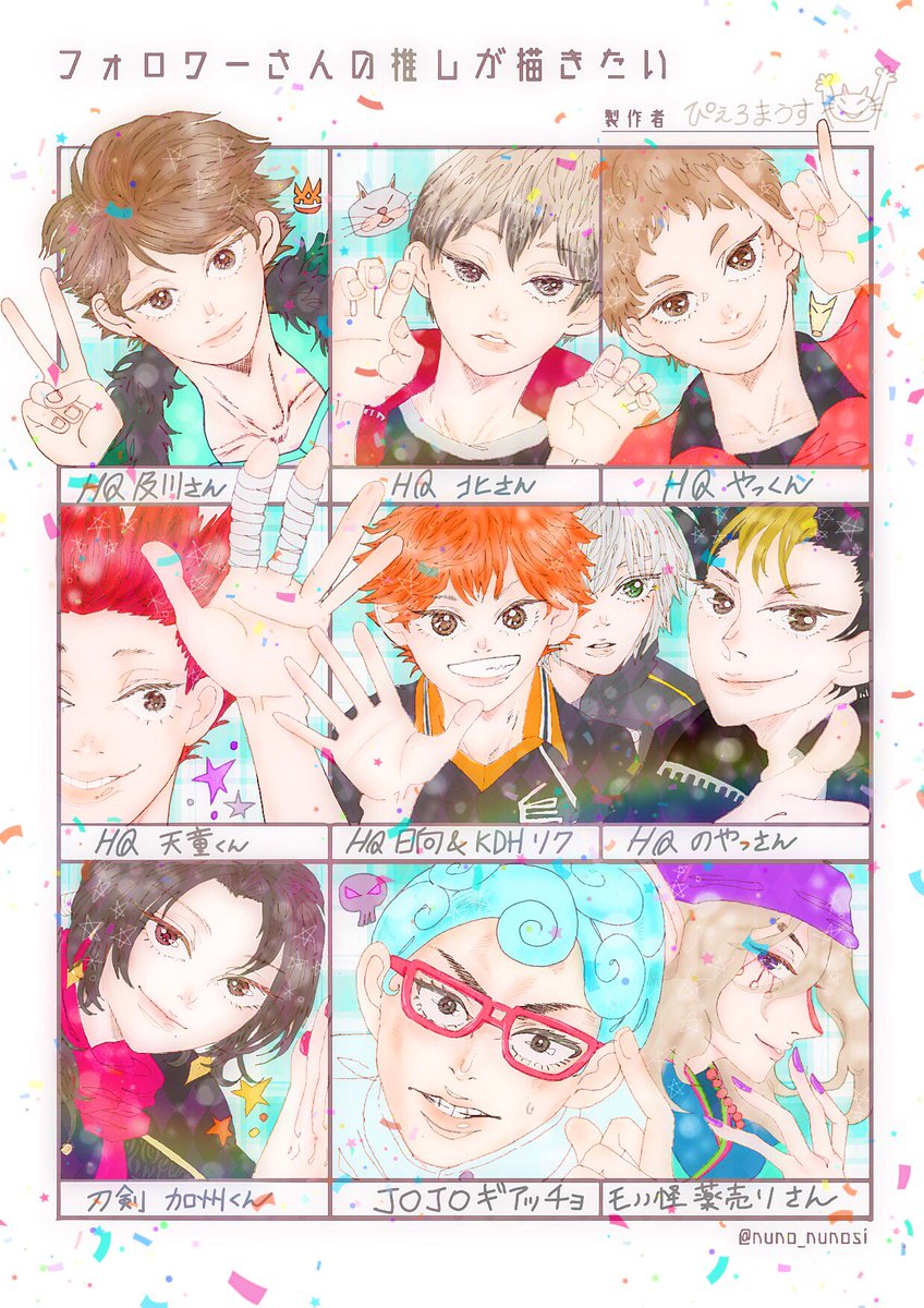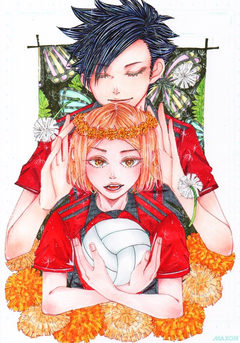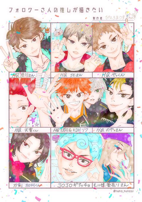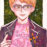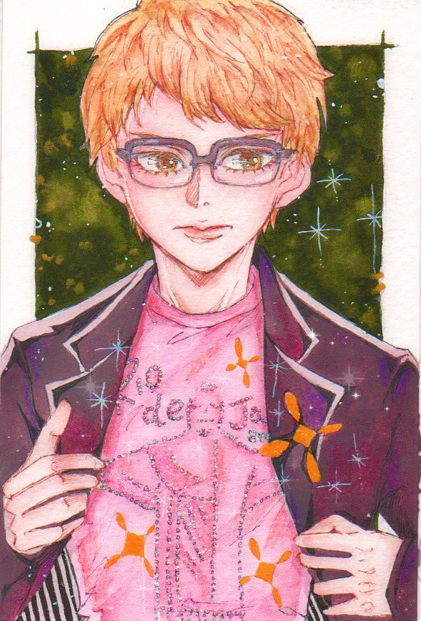 ハイキューより月島くん。 最新巻で日向からのお土産を要らないって言ってたけれど、ショッキングピンクのキラキラTシャツを無理やり着せてキメてもらいました🙏✨← スキャンするとショッキングピンクに映らないなぁ… #フォロワーさんの推しが描きたい