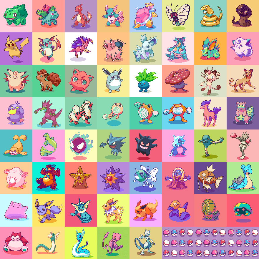I am participating in a #Challenge I set for myself since i started #pixelart in wich I want to pixel the first 152 #Pokemon This is how far i‘ve come! @Pixel_Dailies #pixel_dailies #ドット絵