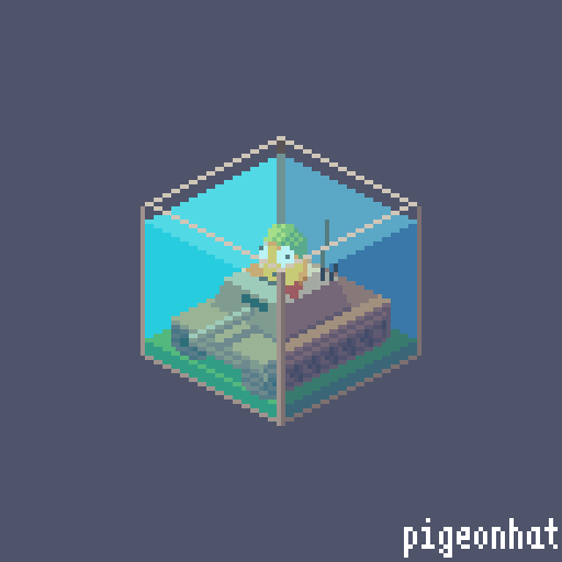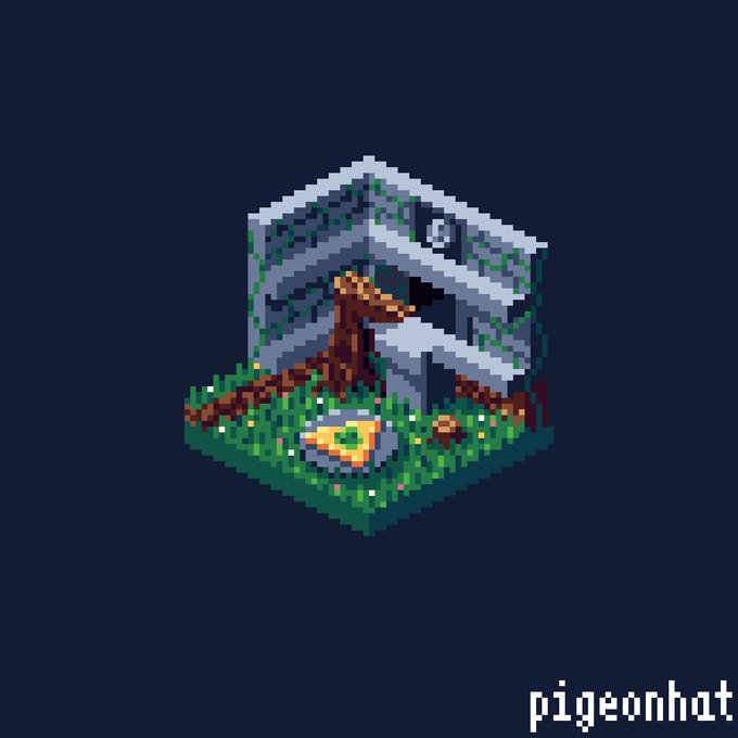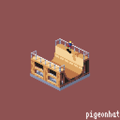 My entry for #cubecollab 's #skatepark theme. Did this on stream and it was super fun so thank you for everyone who was there and if you'd like to watch my process it's available at twitch.tv/pigeon_hat 💙 #pixelart #ドット絵 #aseprite