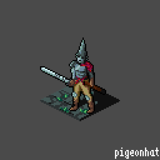 The Penitent One from @BlasphemousGame for #cubecollab's #indiegame theme Was hard to get this looking right at this res and with the set palette but I'm fairly happy with it. Thanks to everyone who stopped by the stream and checked this out! #pixelart #isometric #ドット絵