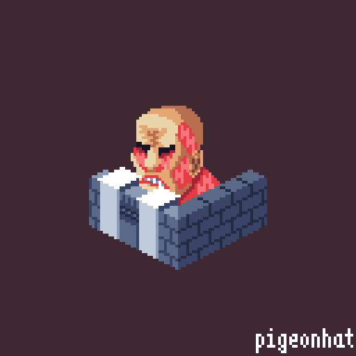 My WIP for the Pixtogether collab on twitter! Still got a long way to go and I need to destroy that house basically. Going to stream more on this tomorrow at twitch.tv/pigeon_hat so feel free to come along and say hi! #pixelart #ドット絵