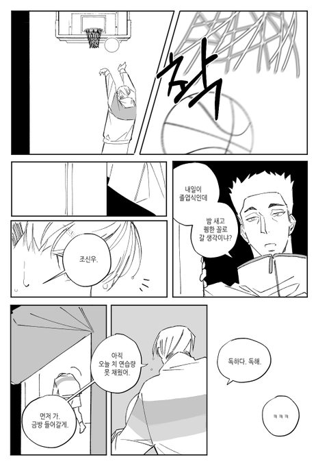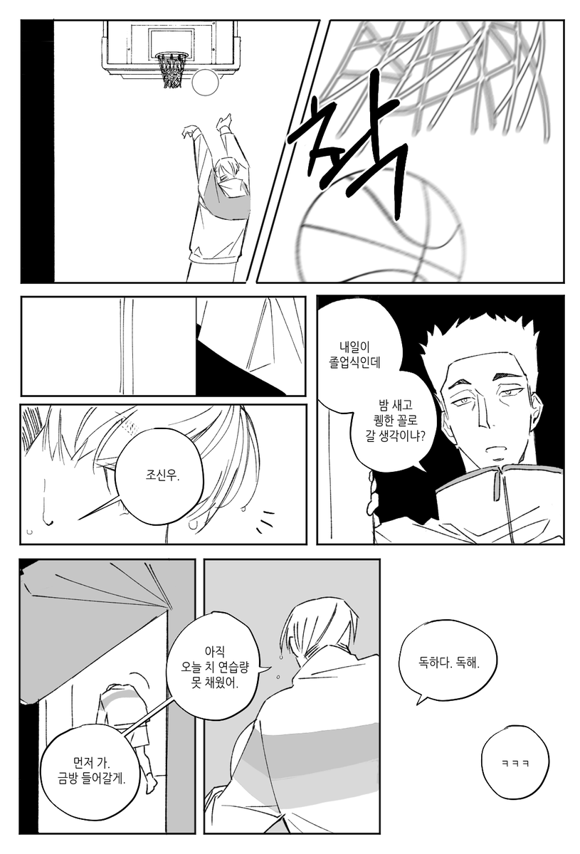 플로터 블록 얘기를 자주했는데 왜냐면제가제일좋아하는슛이 러닝플로터라서 .,,(저희팀이잘말아줌) 신장 작은 가드들이 많이 사용하시는 슛인데 작가님이 설명해주신것처럼 오버핸드로 위로 높이 띄워서 포물선 그리면서 떨어지기때문에 수비가 까다롭습니다 ,, 근데 짱현이가 블록을 해버림ㅜ