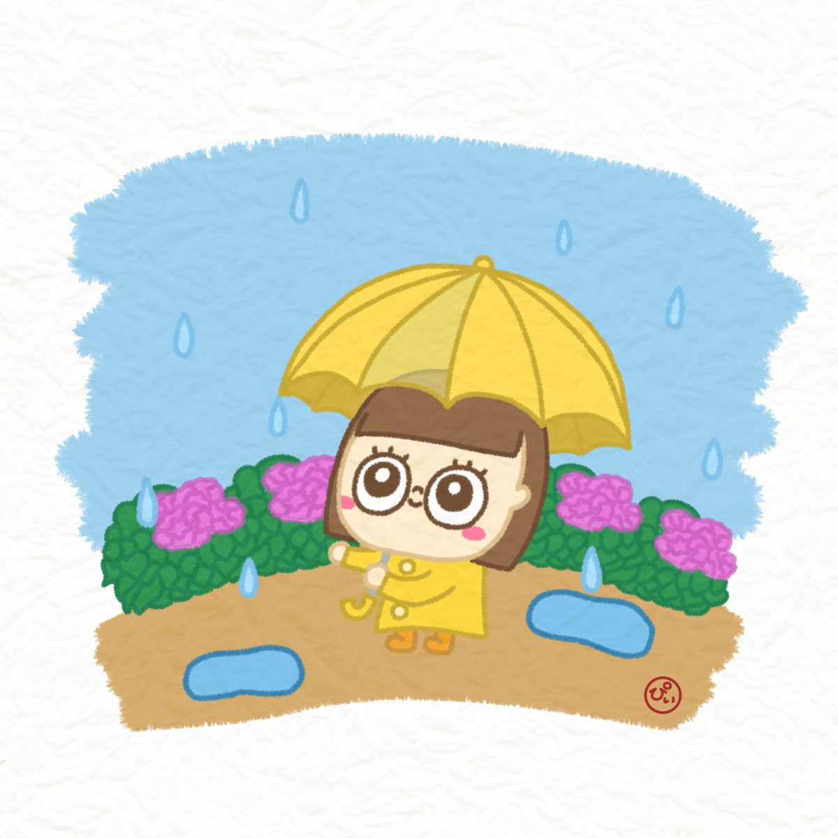 雨の日はカッパ派?傘派?ぴぃちゃんは両方するらしいです😂 #イラスト #ゆるいイラスト #梅雨 #絵描きさんと繋がりたい #illustration #イラスト好きさんと繋がりたい