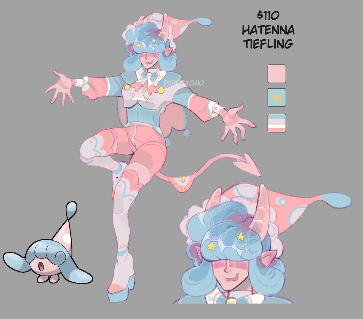 THEY'RE FINALLY UP! It's a hatterene themed tiefling adopt/adoptable! inf below⤵️