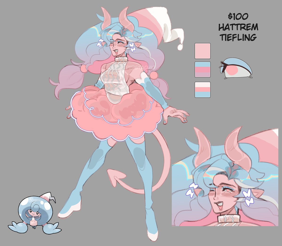 FINALLY DONE WITH THE 2ND ONE! Hattrem Themed tiefling adopt/adoptable is now up inf below⤵️
