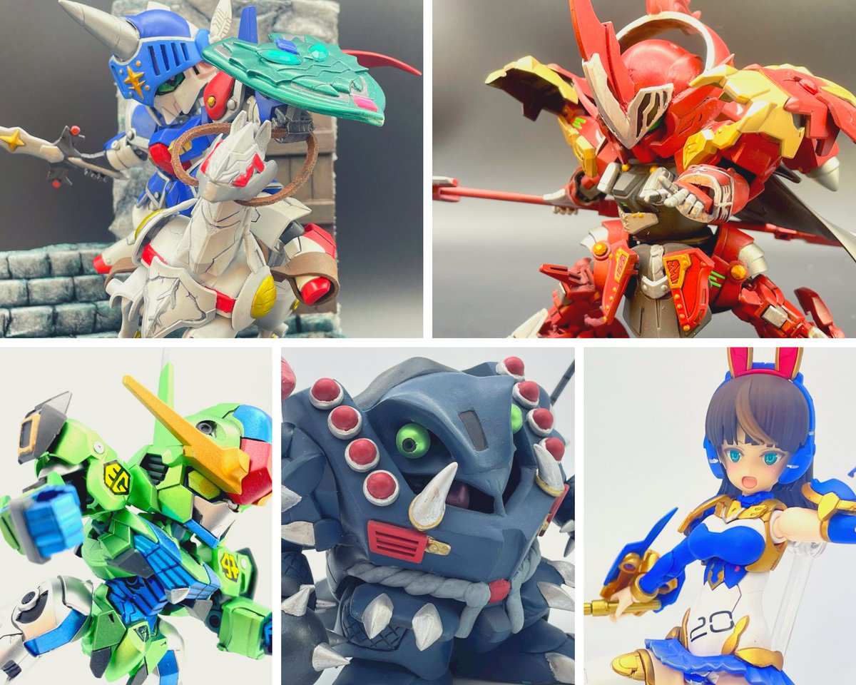 #今月作ったプラモ晒そうぜ 作ったって言うか公開したのは、 新春型ティアーシャ 舞剣士オリファーガンダム 地王アドラステア 召喚士イゾルデ 以上! イゾルデはまだギミックが残ってるのでお楽しみに #30MS #SDガンダム
