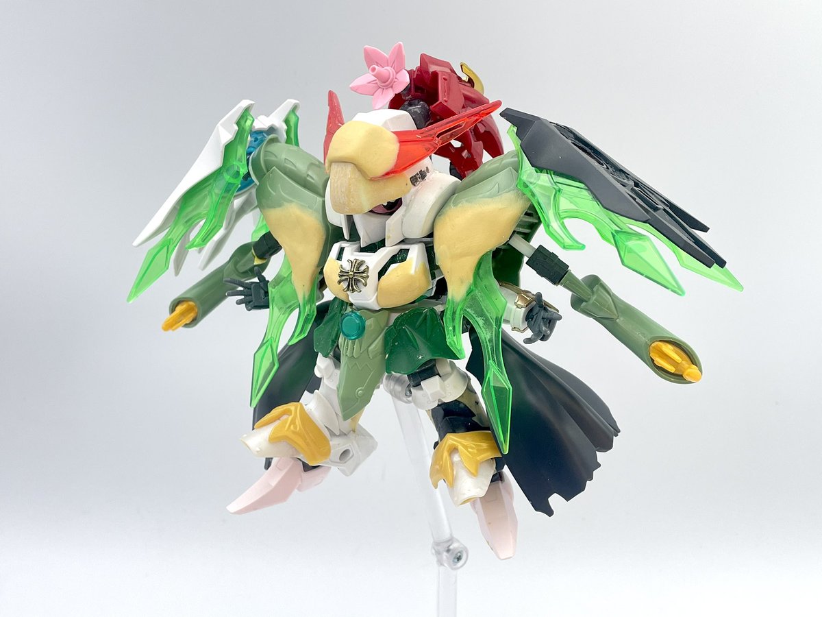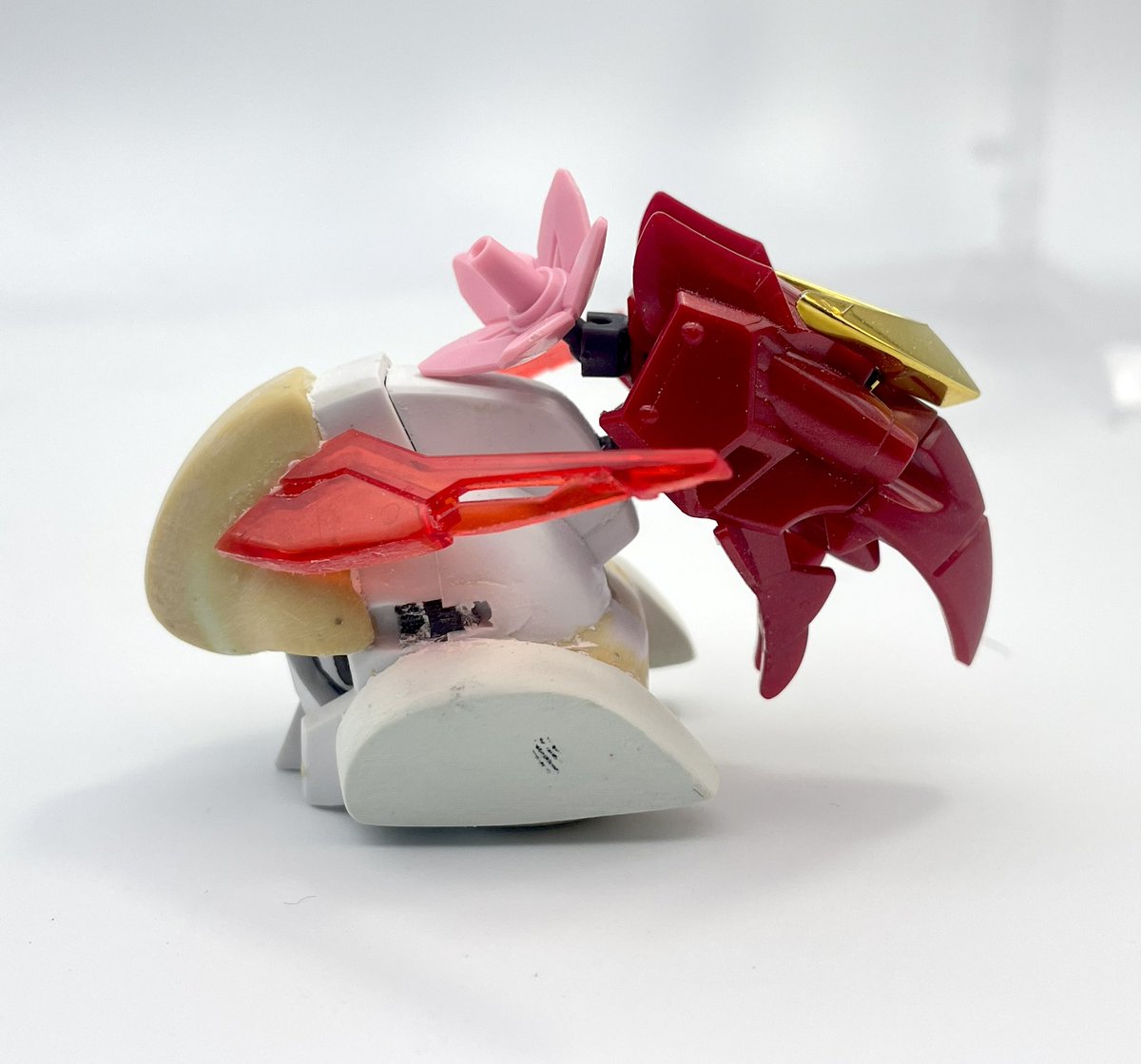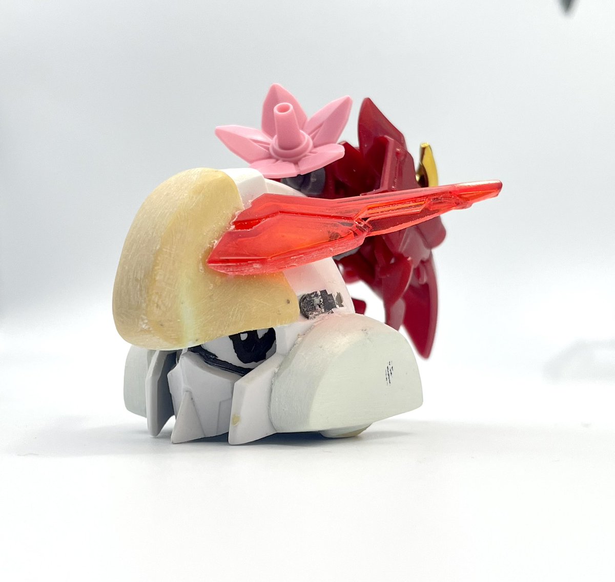 バイアランのアームを杖として解釈するプラン。法術隊に入る予定なので。 女の子らしさを出す為に、目を少し大きくなるよう加工して、おさげとお花を付けてみました。我ながら安直だな… 頭部の造形は、これくらいなら難なく出来るようになってきましたね😁 #俺SD作ってるぜ #バイアランイゾルデ