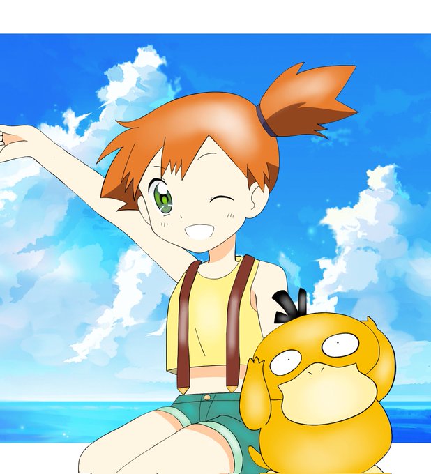 カスミちゃんとコダック 描きました ほぼ完成してたのに途中 カスミちゃんのポーズを 変更したくなり変更したら カスミちゃんの手が 中途半端な事に…w #ポケモン #ポケモン絵描きさんと繋がりたい #絵描きさんと繫がりたい