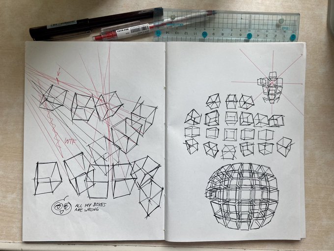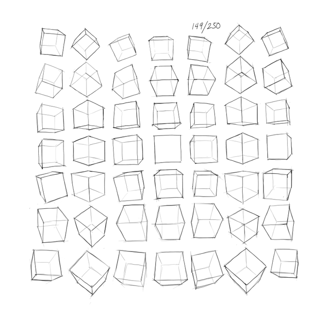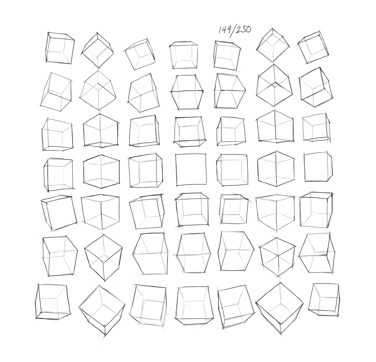 so i drew 150 boxes and wondered if that meant i can invent figures in perspective now and the answer to that is you idiot. you absolute buffoon 100 boxes to go then