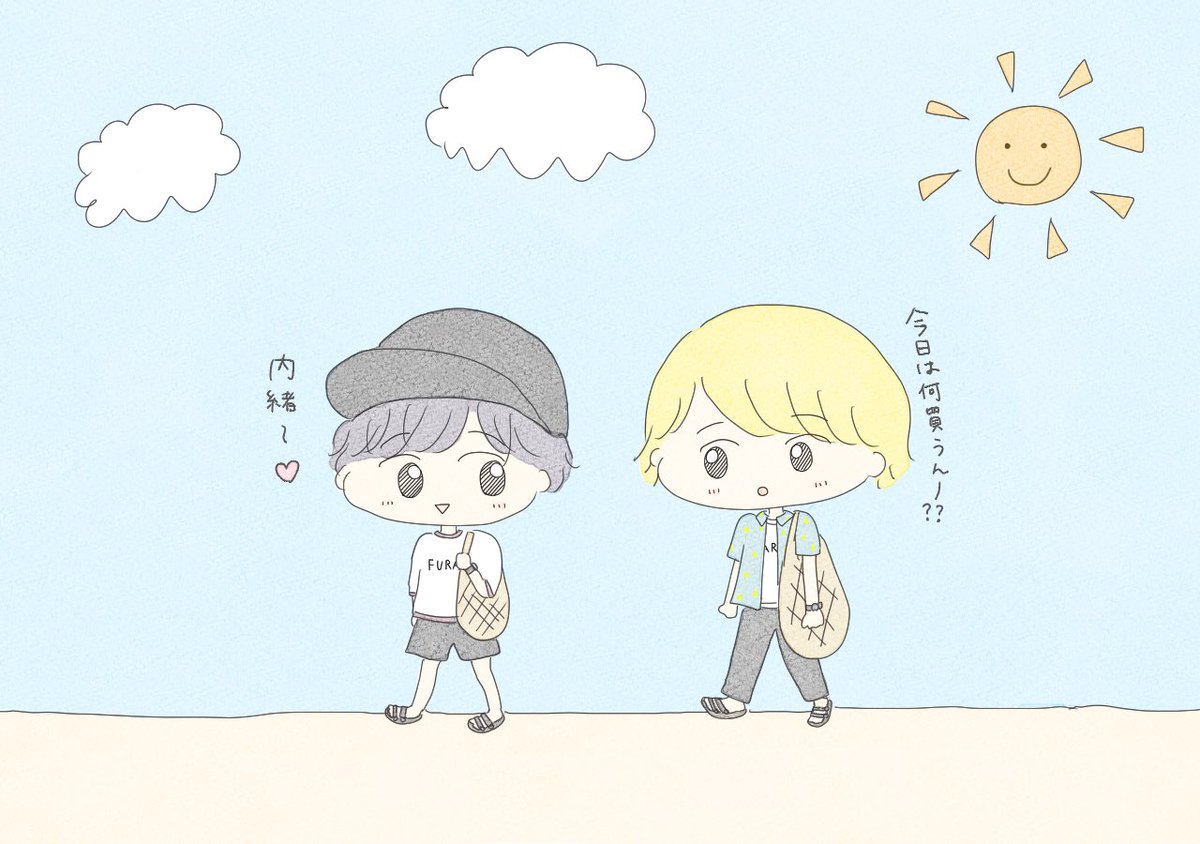 ふたりはクロサワで何をお買い物したのかな?おいしいものたくさん食べてね☀️🍽 #あすかなアート