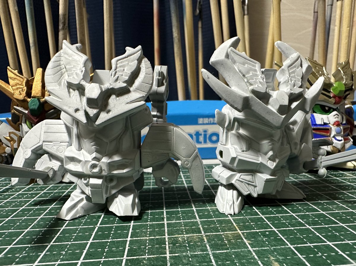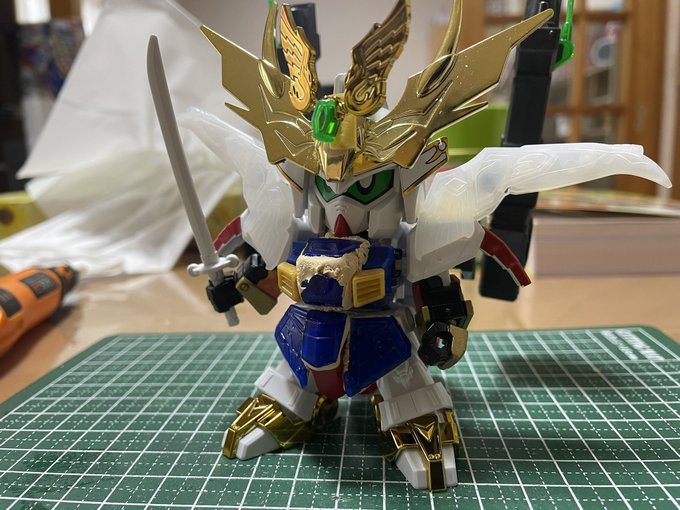 今日は雨降りで公園に行けないから息子はスマブラの練習。 パパは久しぶりに四代目頑駄無大将軍改造してる。 パテを盛ったので固まったら削って行くぞー💪 #SDガンダム #ガンプラ #四代目頑駄無大将軍