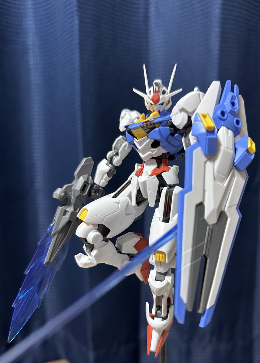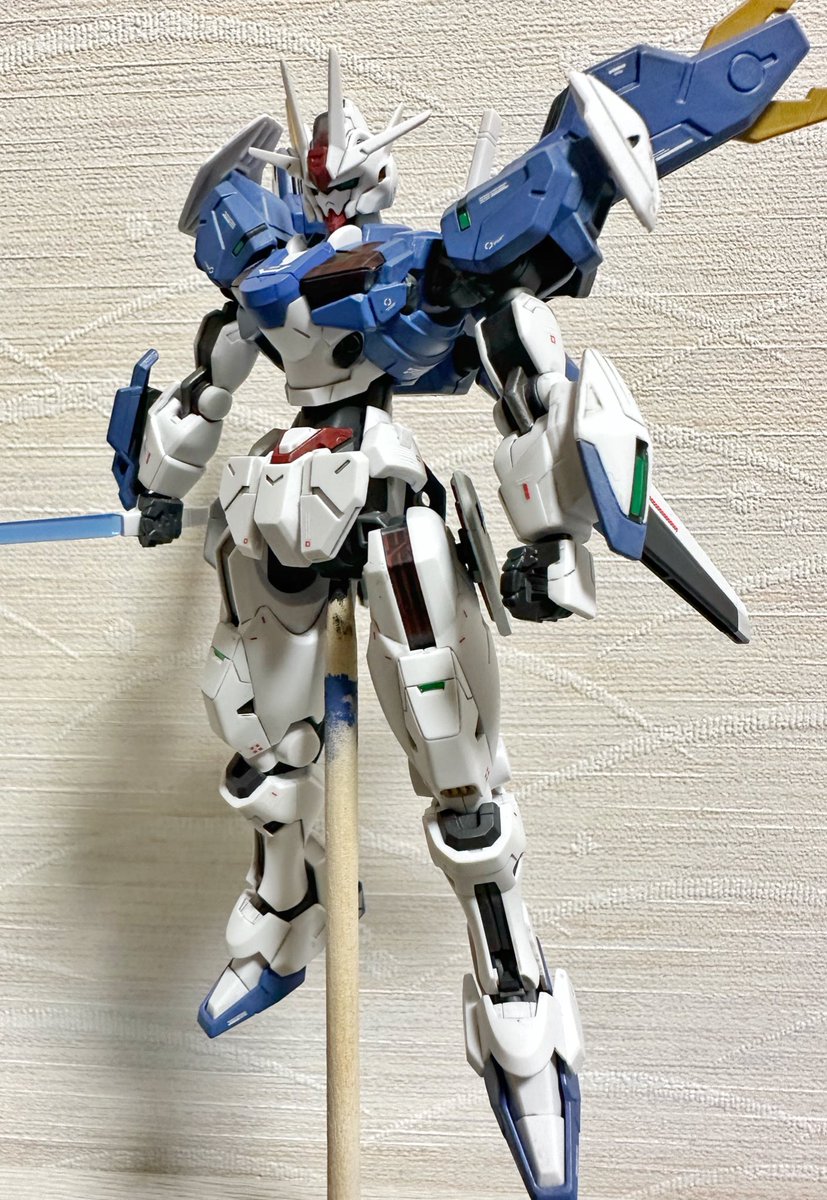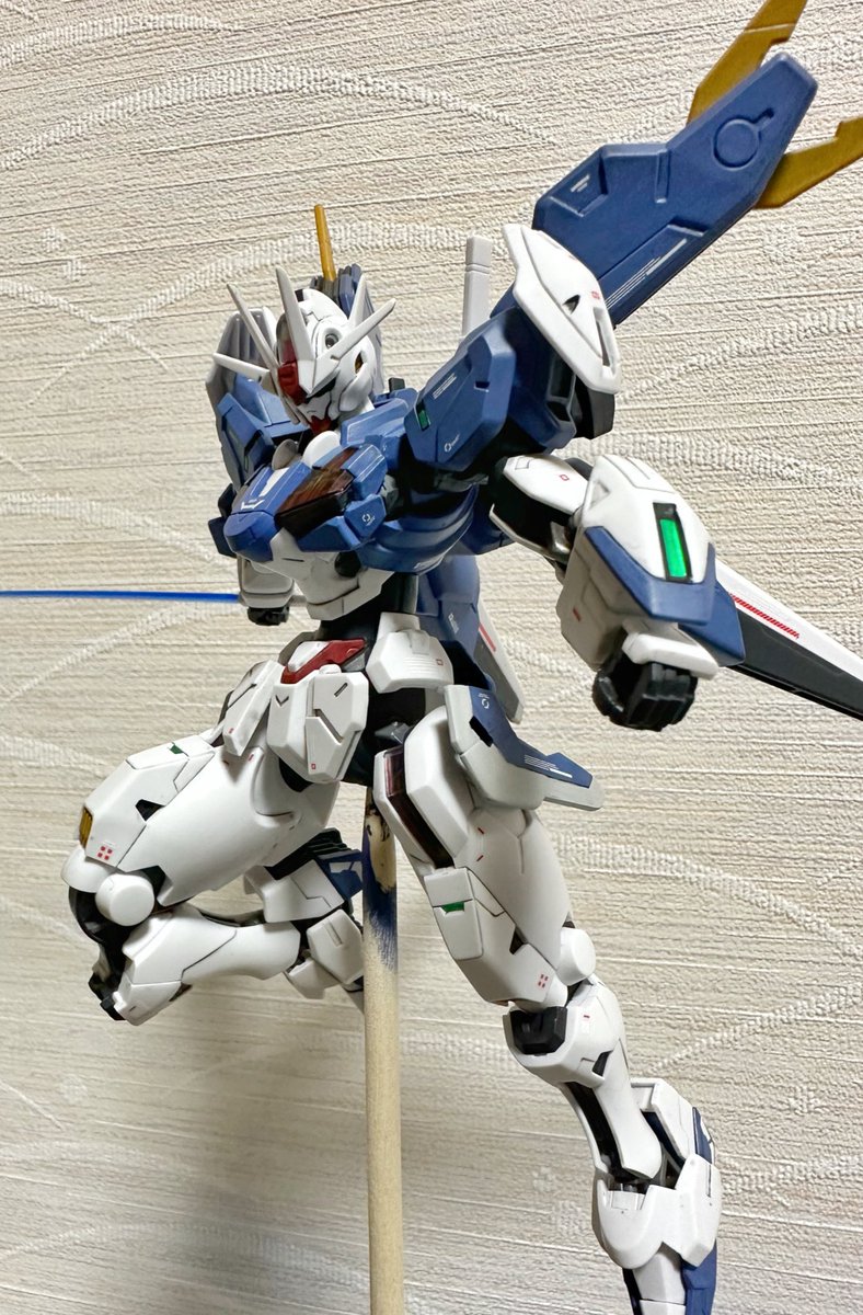 ガンダムエアリアルの素組完成✂️ 素組でもポーズ取らすとかっこいい✨ スミ入れしてちょっと改造したら完成かな。 season2まであと少し…すごい楽しみ☺️ #機動戦士ガンダム水星の魔女 #ガンプラ
