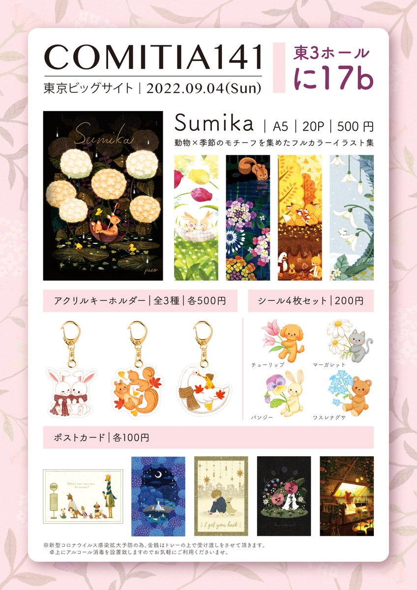 🍒コミティア141のお品書きです🍒 9/4(日)東京ビッグサイト・東3ホール スペース【に-17b】 初イラスト集とその他グッズを販売予定です! よろしくお願いいたします✨ #コミティア141 #COMITIA141