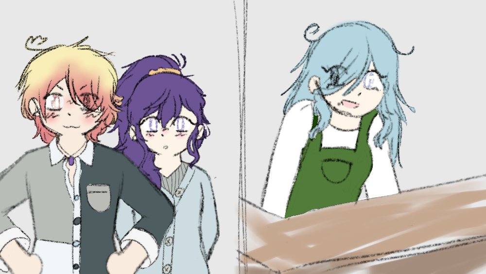 #prskrarepairweek Day 1 (late) : Coffee Shop AU with ShizuMafuKasa (because they grew on me) !! #prsk_FA