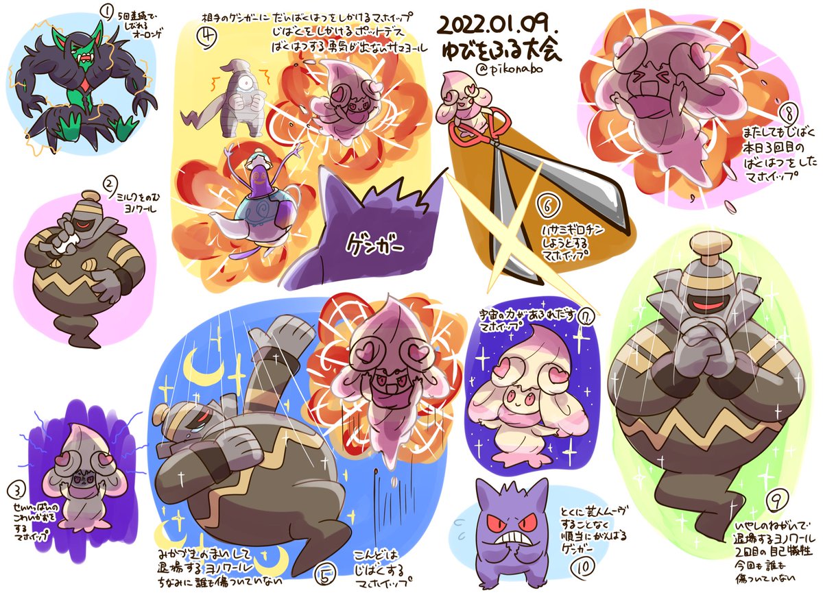 ゆびをふる仲間大会の個人的ハイライト描いてみた!!マホイップがあんまりにも芸人ムーヴしてた&推しなので多め 参加してくれたみなさまありがとう!!! twitter.com/pikonabo/statu…