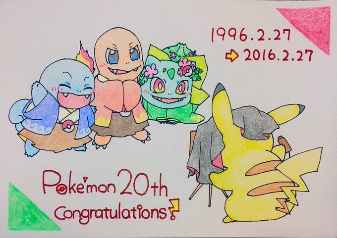 今年は新しく絵を描けなかったので過去絵でお祝い…… 20周年のやつと25周年のやつ! 20周年のは成人式イメージで、25周年のやつはピカチュウが25匹おってキャンバスサイズも2500*2500 ポケモンの全てよ今までずっとずっとありがとう、これからもよろしくね!!! #PokemonDay