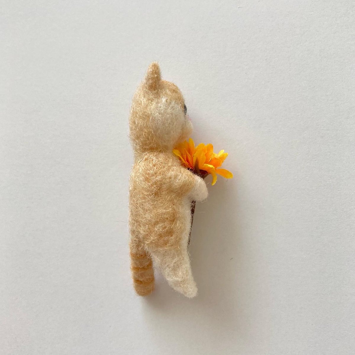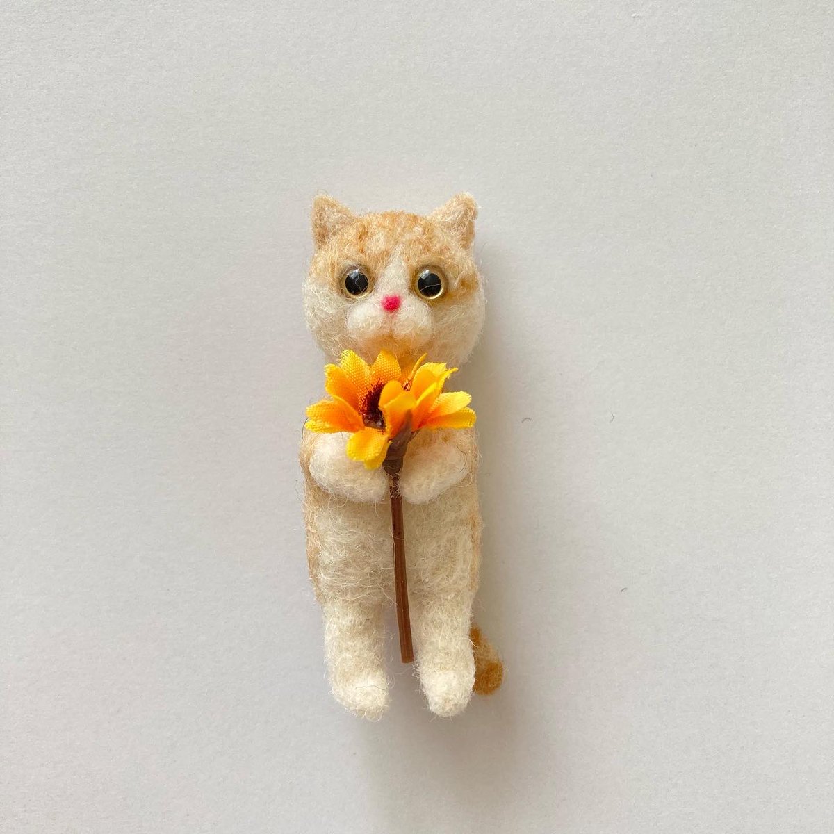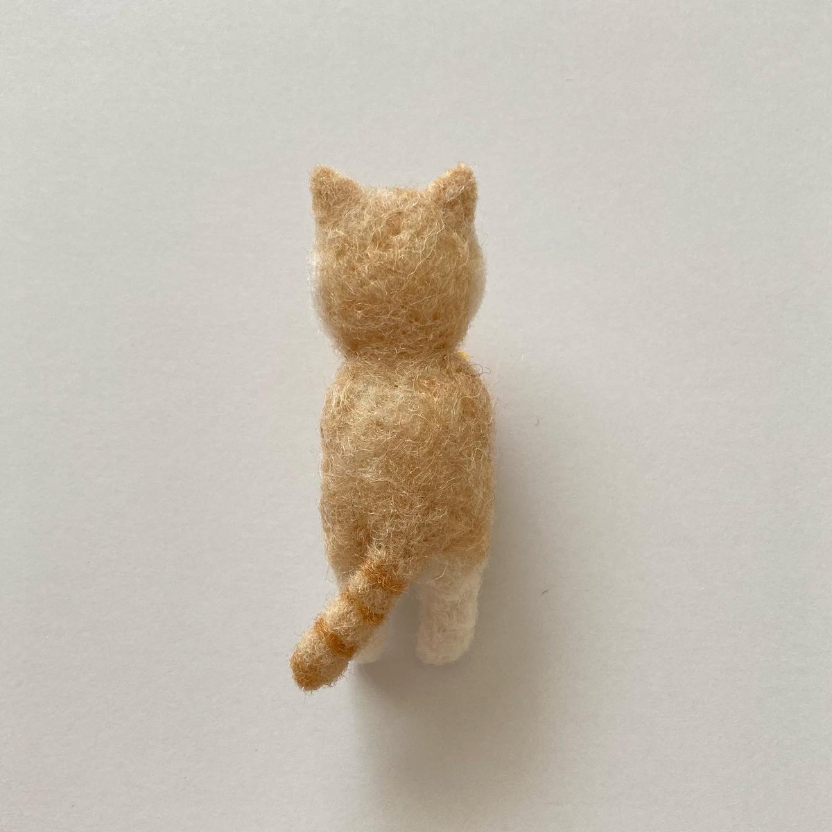 ぶち猫ちゃん。2枚目の写真の下から煽ってみた感じが可愛くて、我ながらいいお顔ができましたね、と思った作品。 既にお迎え先へと出発したので、早くお手元に届くといいな〜とわくわくしてます☺️ #ねこ好きさんと繋がりたい #羊毛フェルト