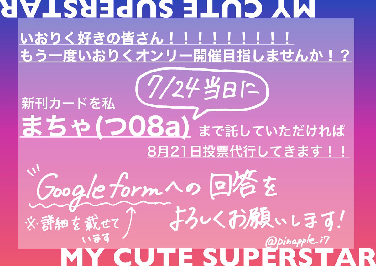 【🐰いおりく好きの方へ🍓】※RT協力お願いします リアルひらいて赤ブー開催が発表されました! 来年6月ジュンブラ月開催です!💐 もう一度オンリー開催に向けてみなさんにご協力いただきたいです🙇♀️ 新刊カードお持ちの方ぜひ…! 詳細はフォーム説明文に記載しています🙇♀️ docs.google.com/forms/d/e/1FAI…
