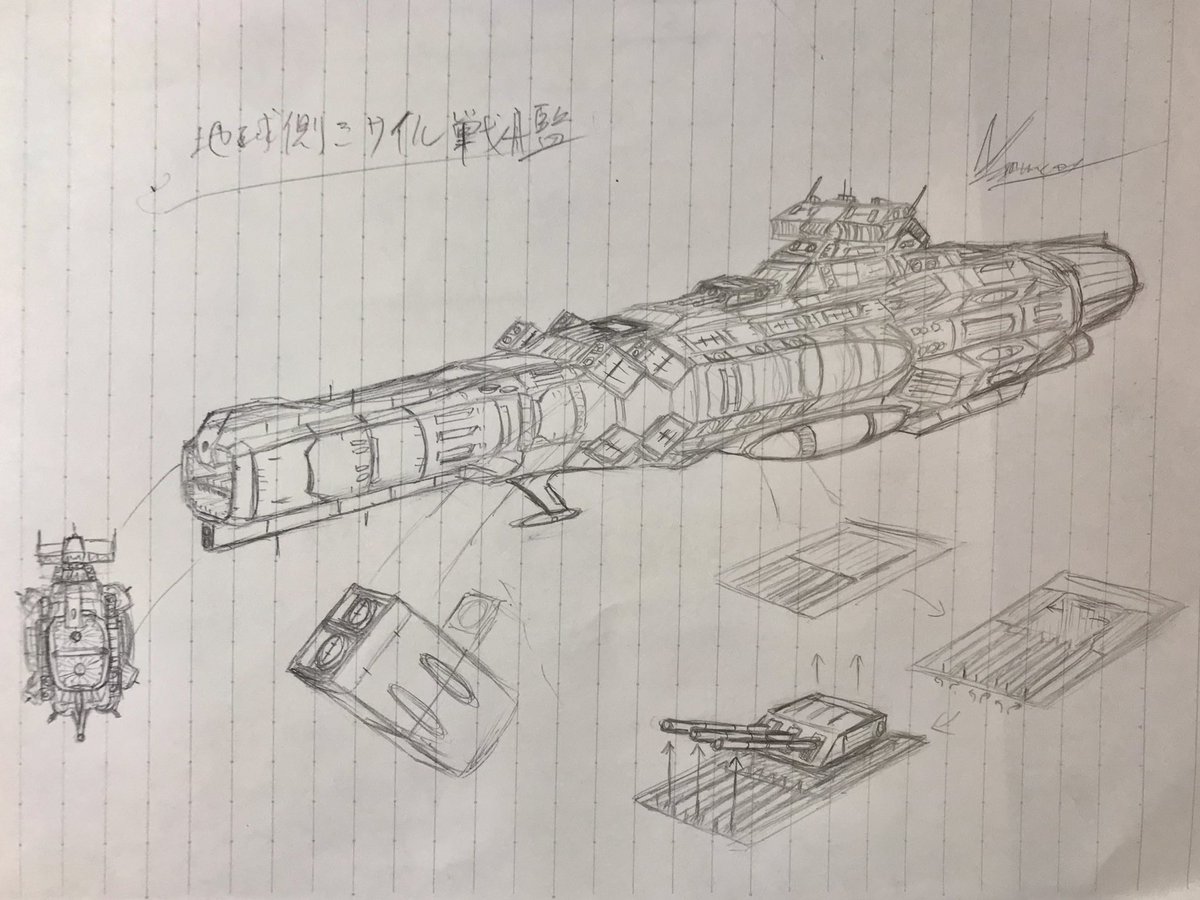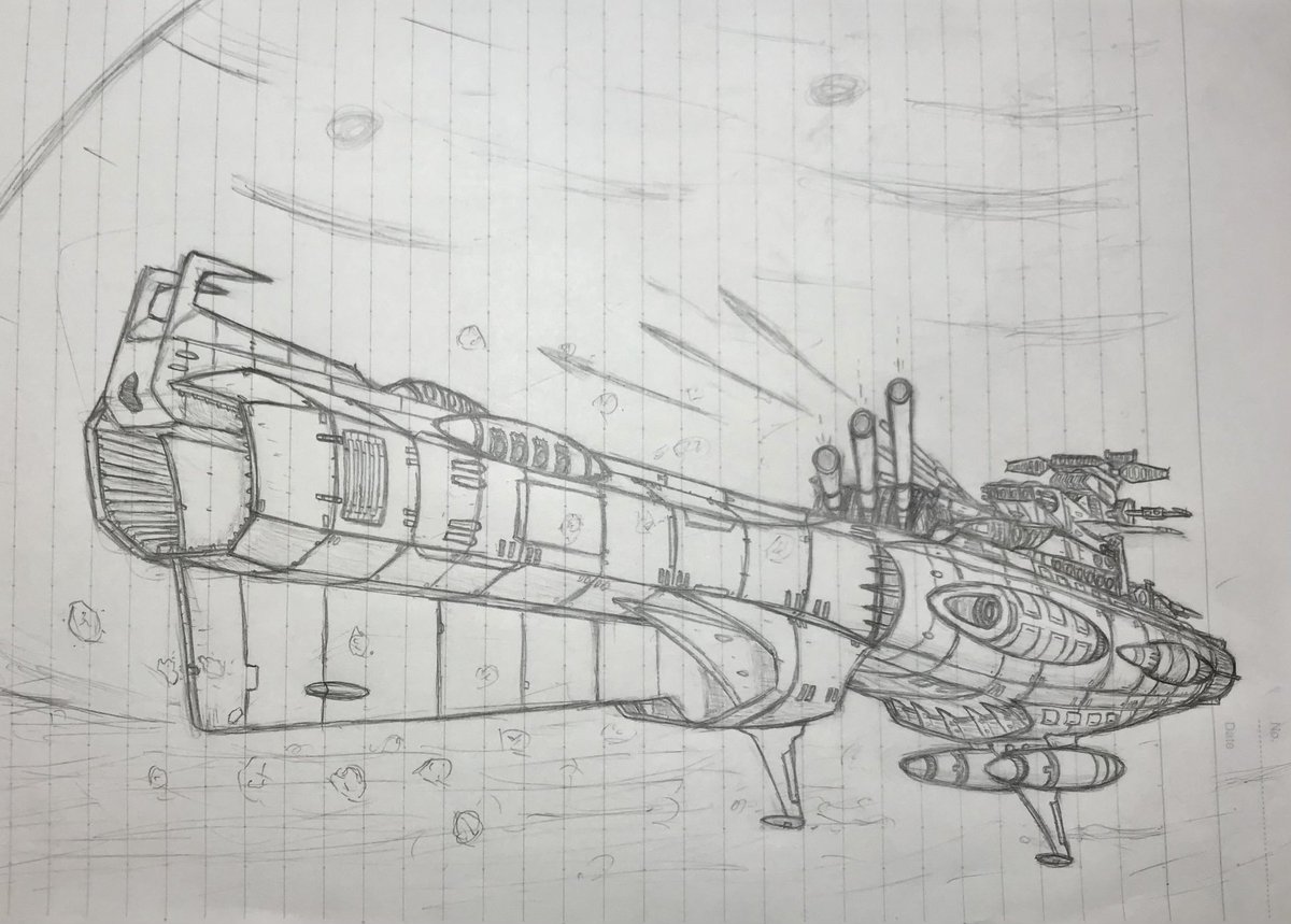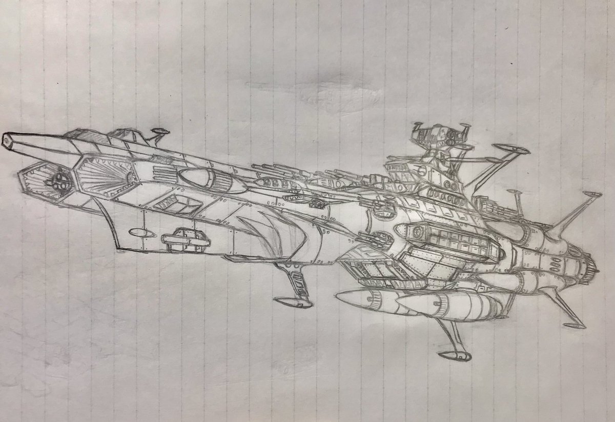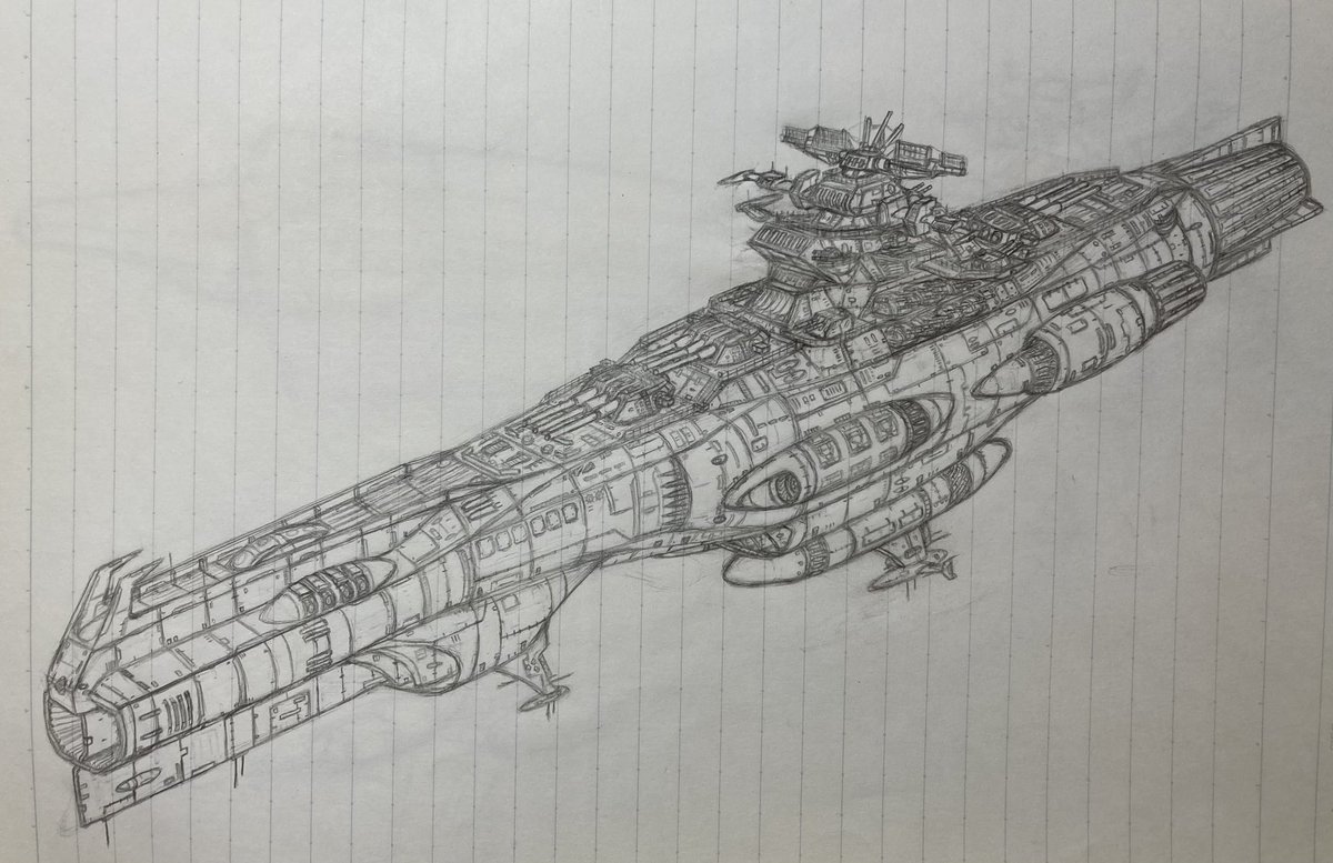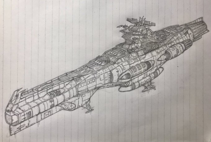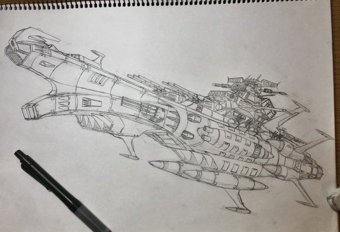 #今月描いた絵を晒そう ・実写版風主力戦艦 ・本家寄り化実写版風ガミラス艦 ・5分アンドロメダ(水性マーカー試塗) ・地球側ミサイル戦艦 実写版風主力戦艦のカロリー高すぎて… 当分これをこえるものは描けないだろうなぁ…