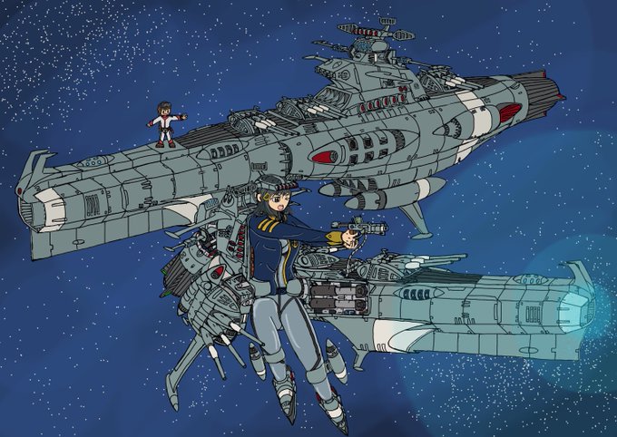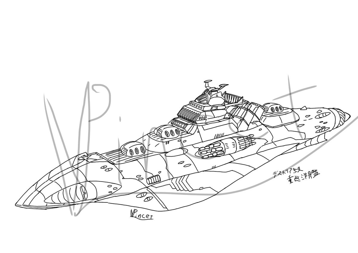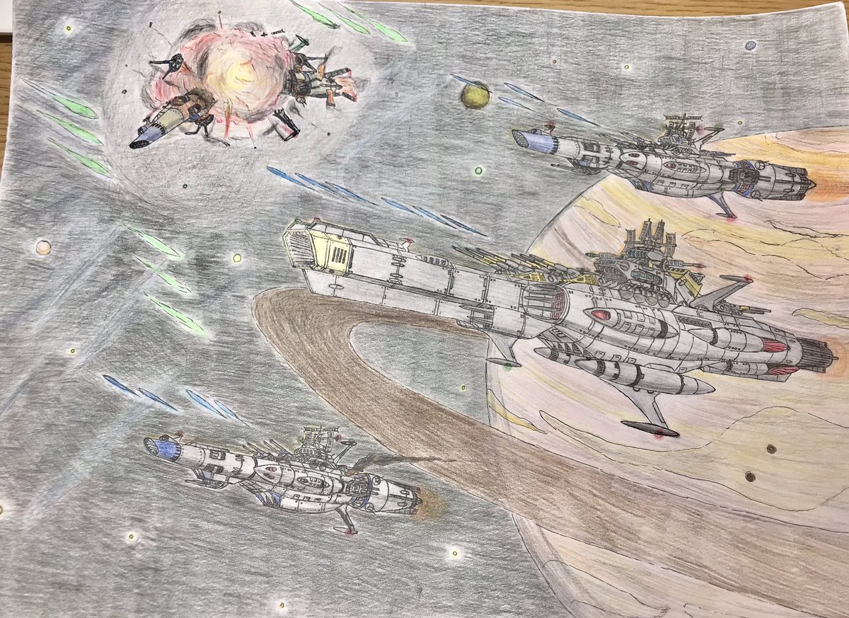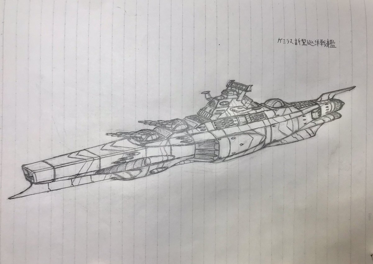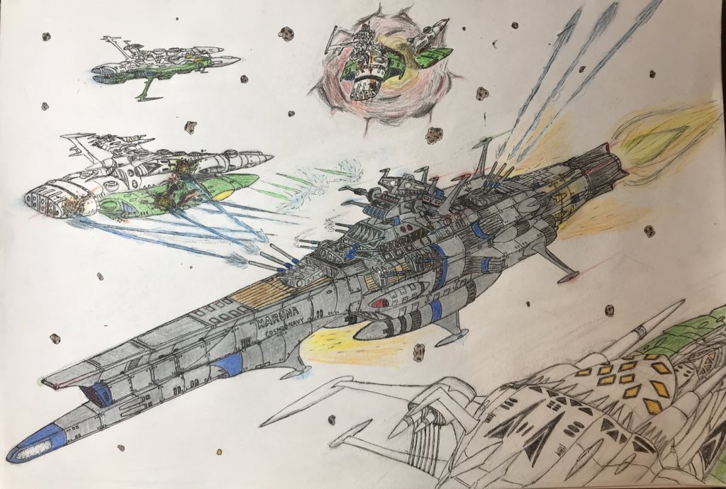 #今月描いた絵を晒そう ・実写版風主力戦艦 ・本家寄り化実写版風ガミラス艦 ・5分アンドロメダ(水性マーカー試塗) ・地球側ミサイル戦艦 実写版風主力戦艦のカロリー高すぎて… 当分これをこえるものは描けないだろうなぁ…