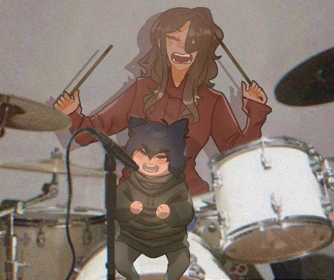 Art collab with the @settingsun_bun Rae and Corpse Cat hitting them bars 😎 #corpsehusbandfanart #valkyraefanart