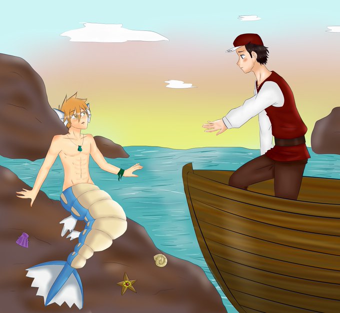 #mermay in Pokémon style and a little bit gay™ #originalshipping #namelessshipping #グリレ #レグリ #ポケモン #グリーン #レッド