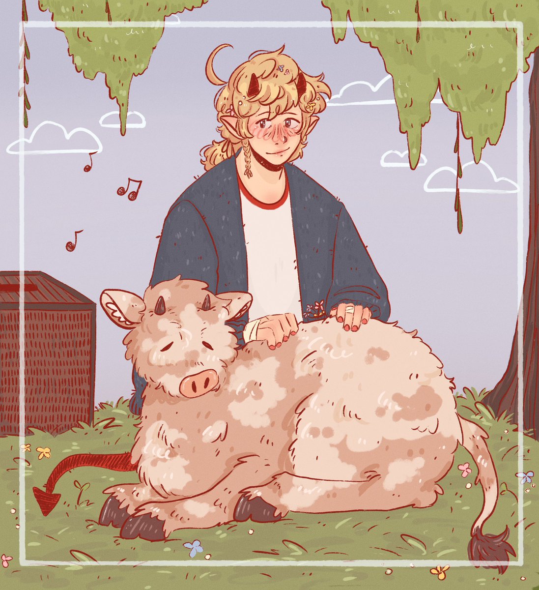 “This one’s my favorite,” he added as he gently tucked the flower behind Technoblade’s ear, the one that had the emerald earring that Wilbur had found so familiar, “because it means friendship.” #tommyinnitfanart #passerine #passerinefanart