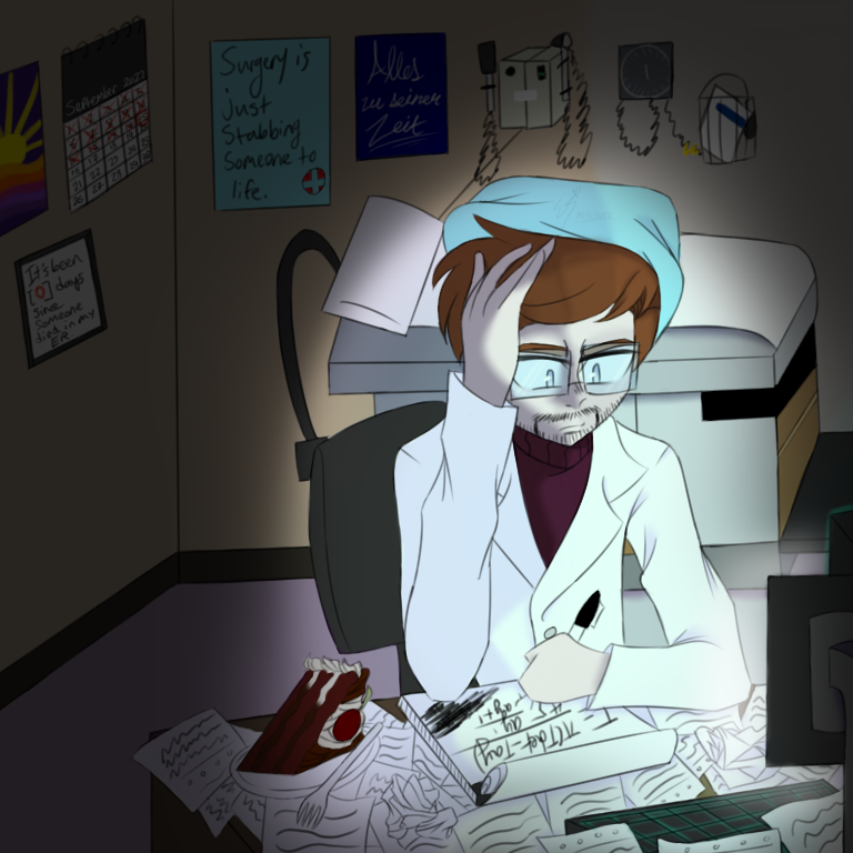 19 92 𝘞𝘰𝘳𝘬𝘪𝘯𝘨 𝘭𝘢𝘵𝘦 𝘩𝘰𝘶𝘳𝘴. Happy 6th Henrik! 🎂 #jacksepticeye #septicart #henrikvonschneeplestein #drschneeplestein #jacksepticeyefanart 22/09/16 01:10