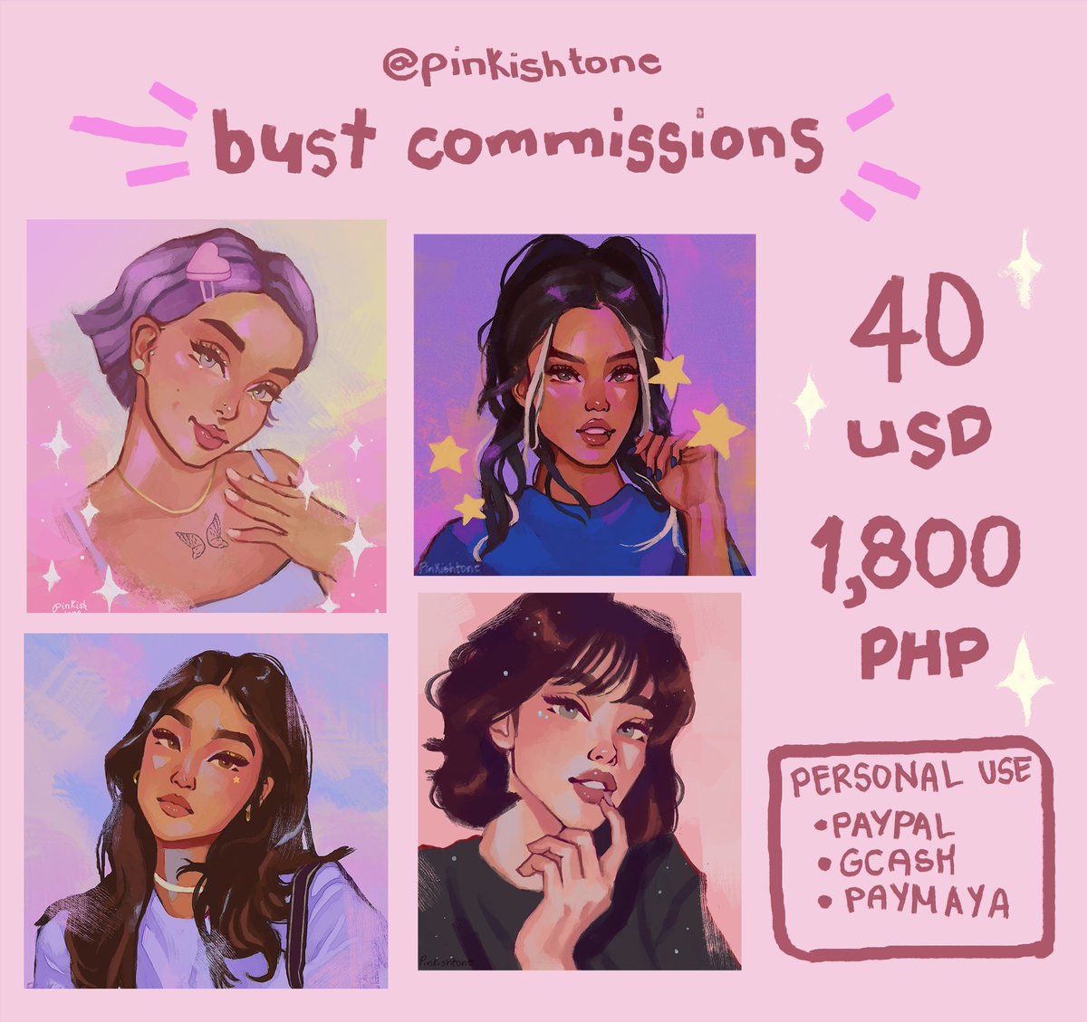 💫 commissions open 💫 will open 6 slots for bust comms ♡ send me a dm to reserve a slot 🤍 rts are very appreciated!! #commissionsopen #artistontwitter #artcommission