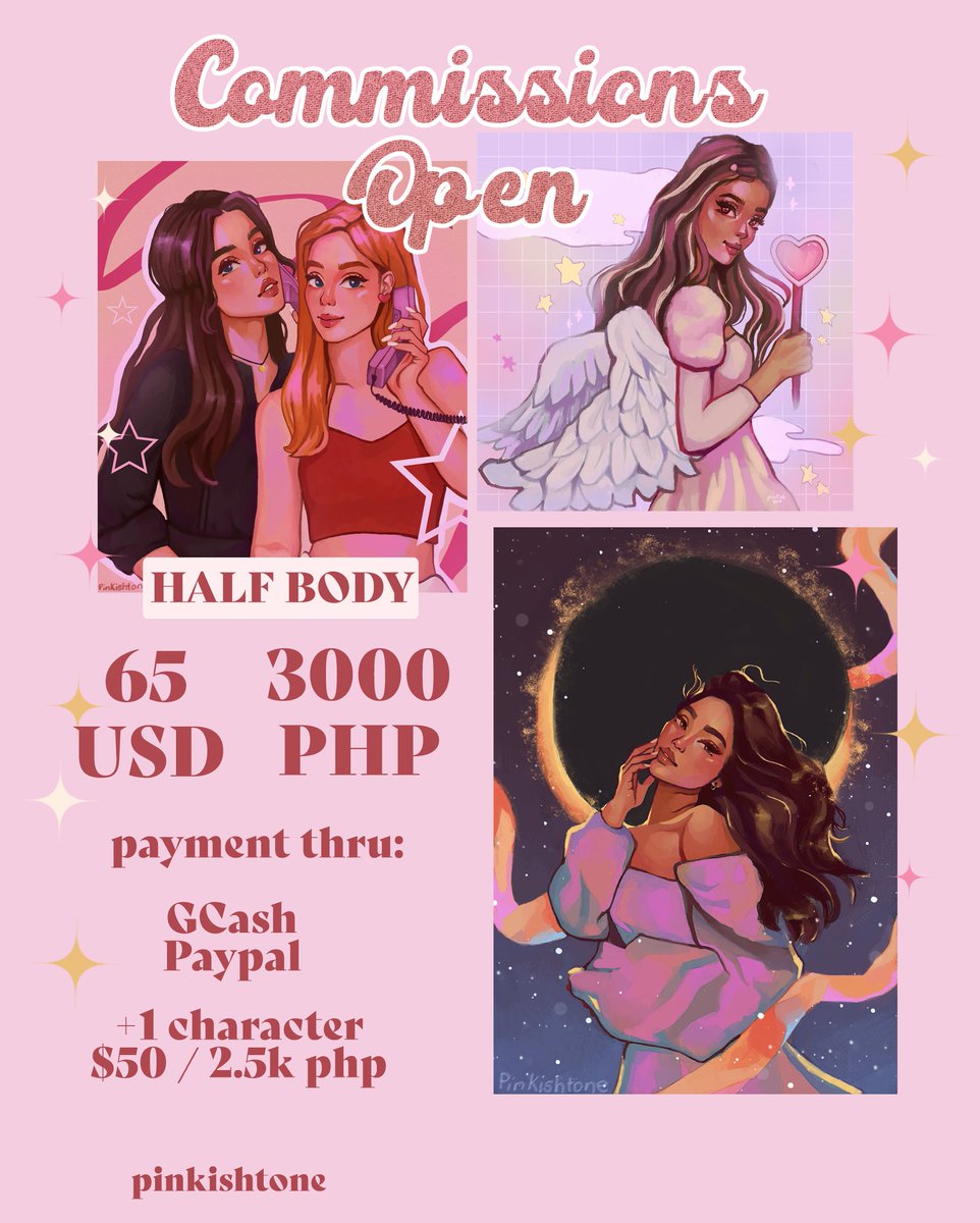 °ʚ COMMISSIONS OPEN ɞ° opening comms again! 💓 ♡ send a dm if interested ♡ portfolio + terms here: pinkishtone.carrd.co [RTs & likes very appreciated] #commissionsopen #artistontwitter #artph #artcommissions