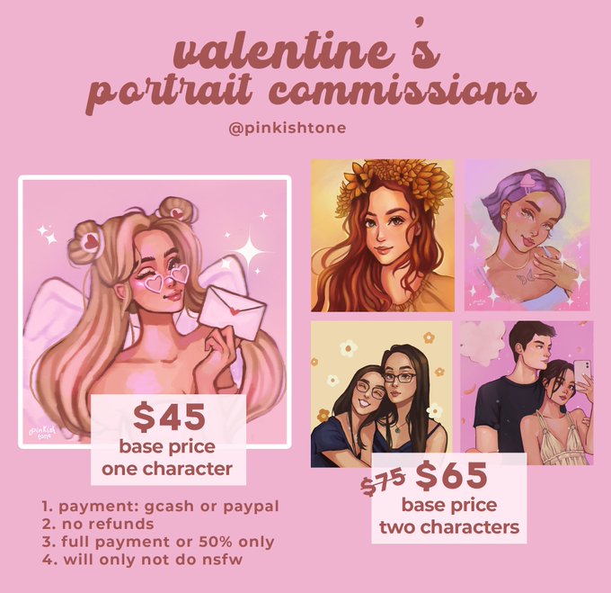 ଘੈ‧₊˚COMMISSIONS OPEN ୧┈• 。 ゚ with a hearts day promo this time 🥰 get a discounted price if you get a couple portrait 💘 limited slots only! send me a dm if interested ( RTs & ♡ appreciated) #commissionsopen #artistontwitter #artph #artcommissions