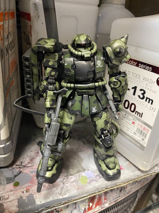 もう人にプレゼントしちゃったけど、 マスキングで迷彩はめちゃくちゃ時間かかった( ̄▽ ̄;) #年の瀬に渾身のプラモ晒すのでフォローしてください #ガンプラの画像貼るとRTされると聞いて #ガンプラはどんな自由な発想で作ってもいいんだ