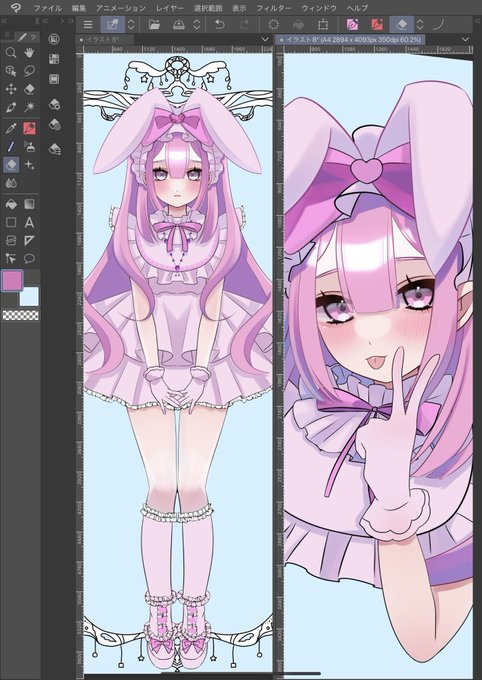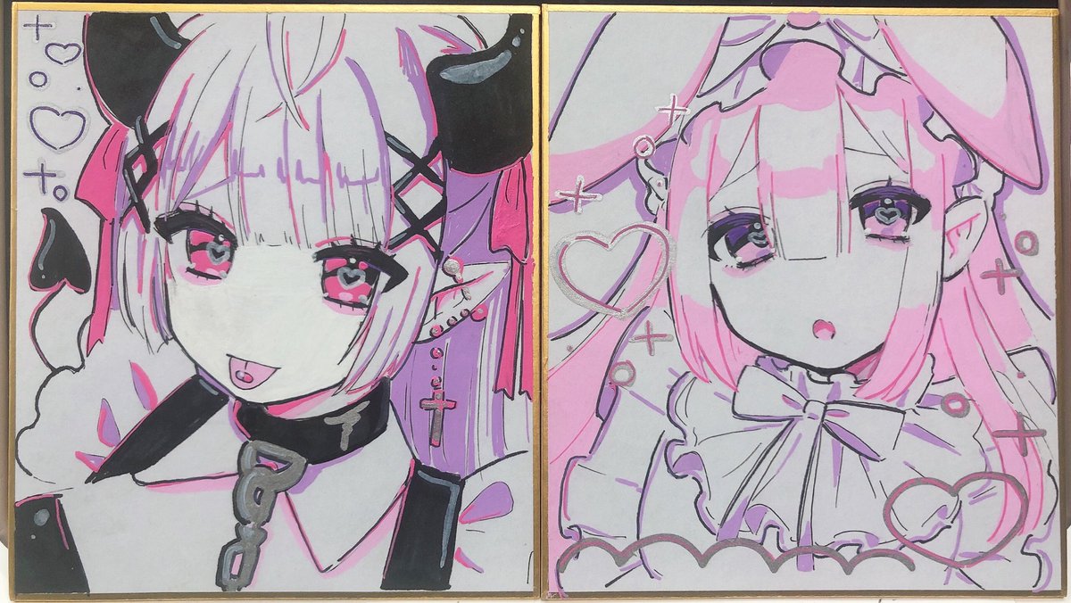 まだお品書き作れてないですが・・・( ; ; ) 💖サキュバスちゃんミニ色紙 💖うさ耳ロリータちゃんミニ色紙 販売予定です! その他缶バッジ、キーホルダー、シール、ポスカ等グッズ持っていきます🐰 🎀ブース番号:南館1階H‐24 #デザフェス56 #デザフェス56お品書き #絵描きさんと繫がりたい