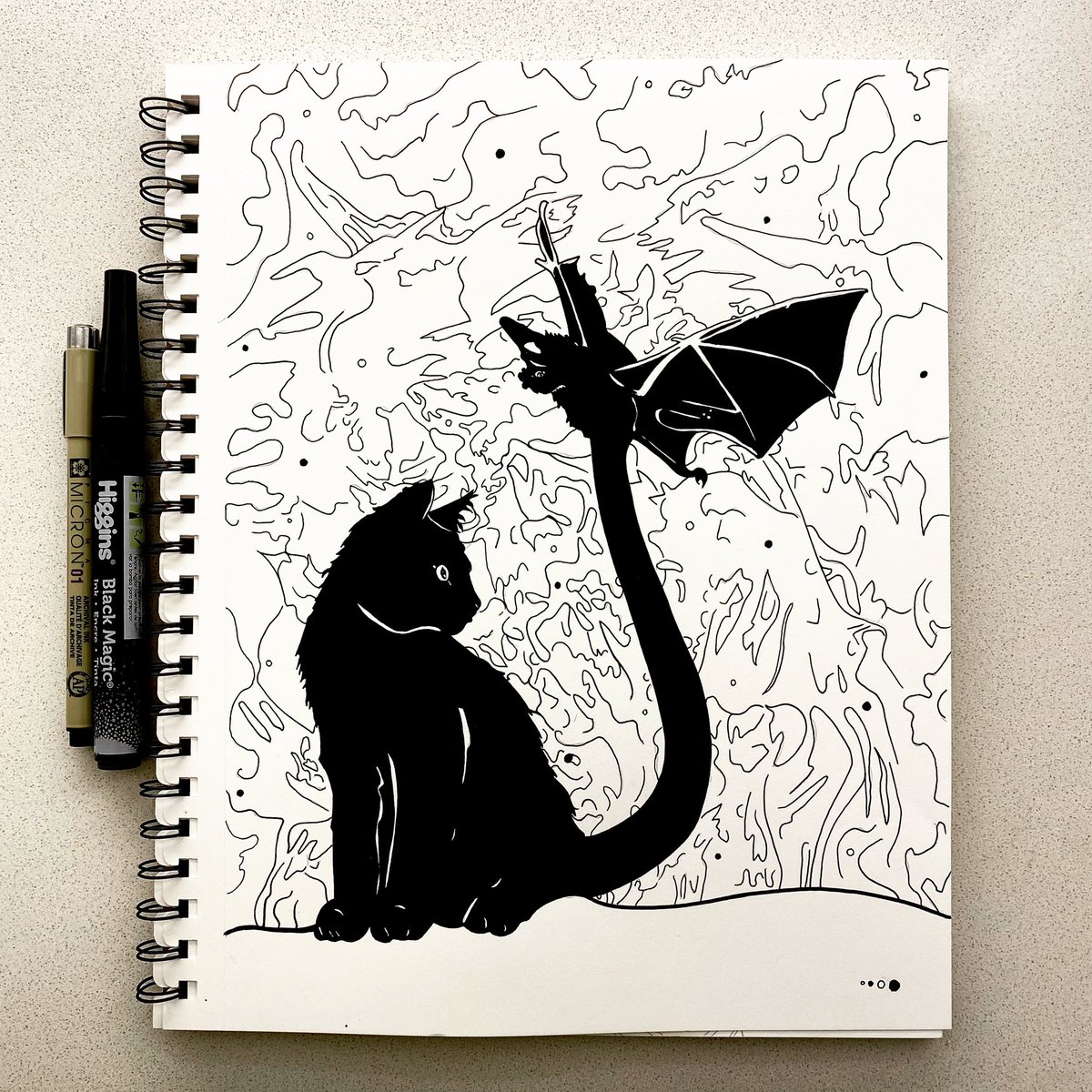 #Inktober Day 5, #Flame/#Library I love, love this concept even if I did cheat a bit on the library prompt! #inkdrawing #ink #illustration #drawing #sketch #sketchbook #inktober2022 #inktoberflame