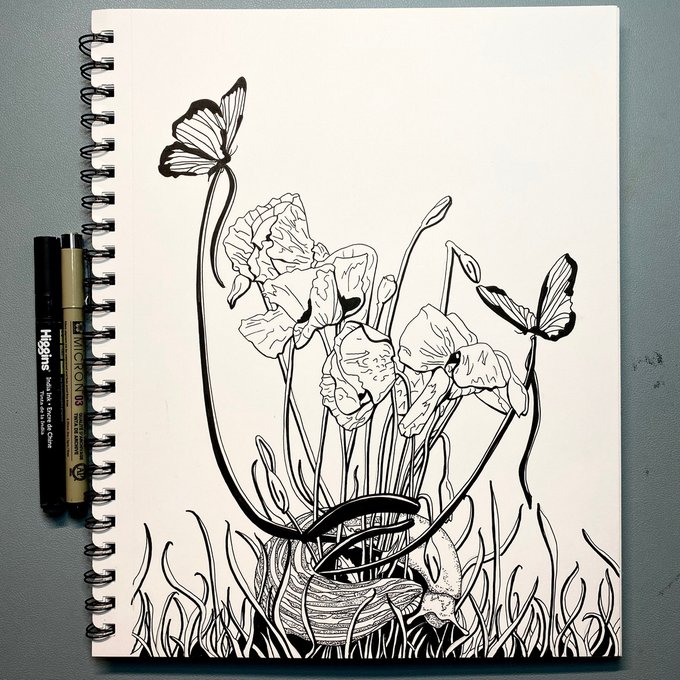 #Inktober Day 6, #Bouquet I couldn’t figure out a combo that could work in the other prompt “mall” but I love the idea of the #wildlife gathering a bouquet! #inkdrawing #sketchbook #sketch #illustration #ink