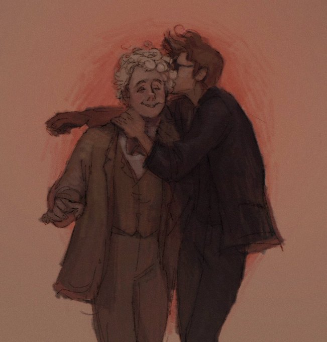 squeeze (i am incapable of drawing anything other than them atm) #goodomens #ineffablehusbands #Crowley #Aziraphale #painting #digitalart #fanart