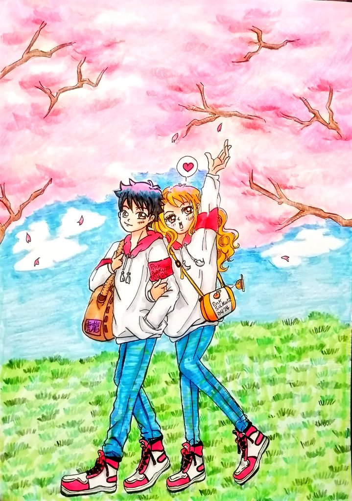 ルナミお花見🌸✨ 可愛く描けたぁ~満足😊💗 色鉛筆も色々景色とか練習していきたい✨ (RTで気になった方フォローするかな…🌸) #ルナミ #ONEPIECEファンアート #ワンピース #色鉛筆 #絵描きさんと繋がりたい