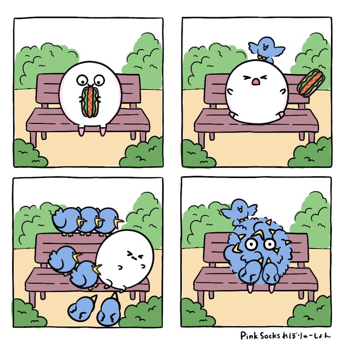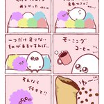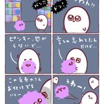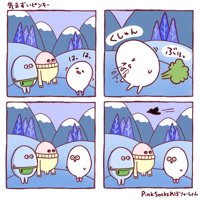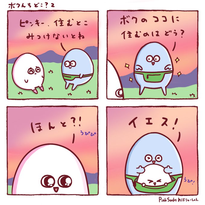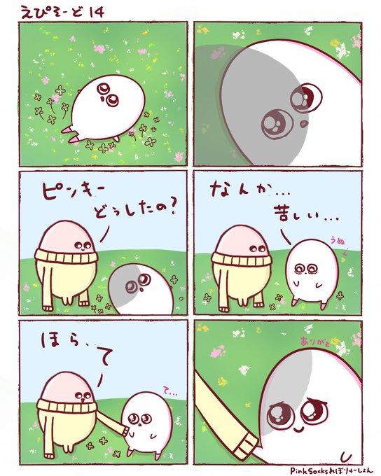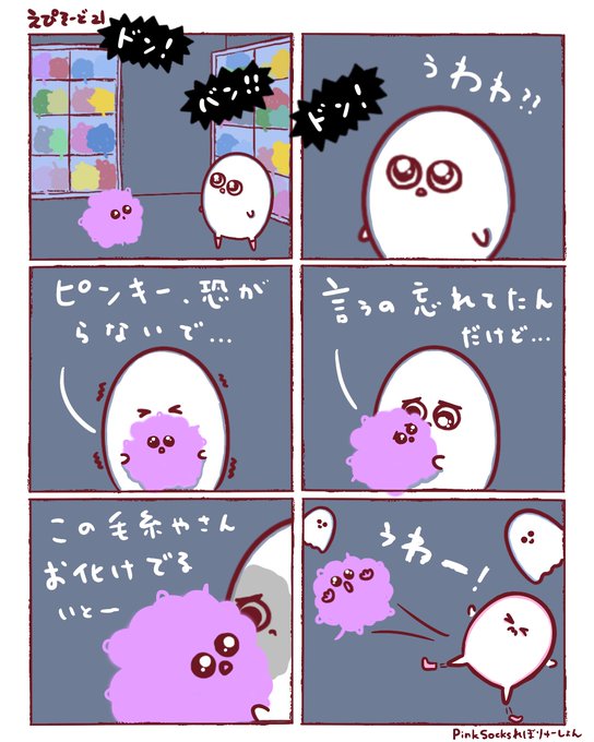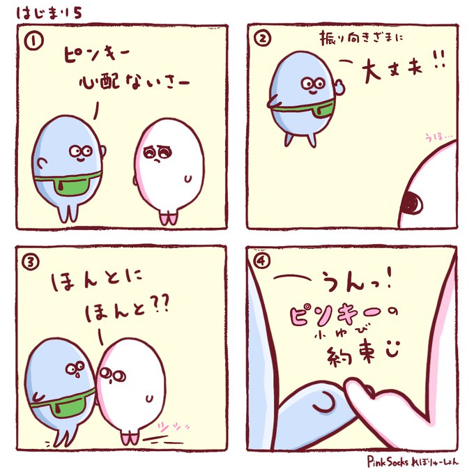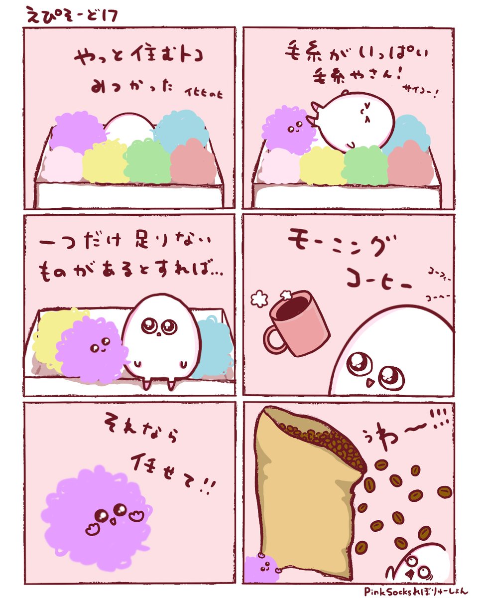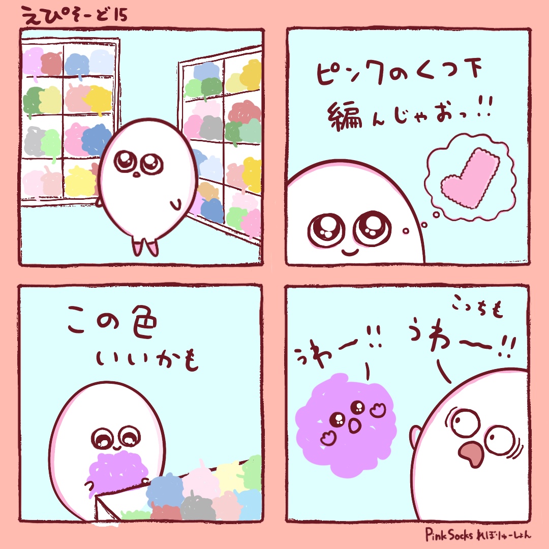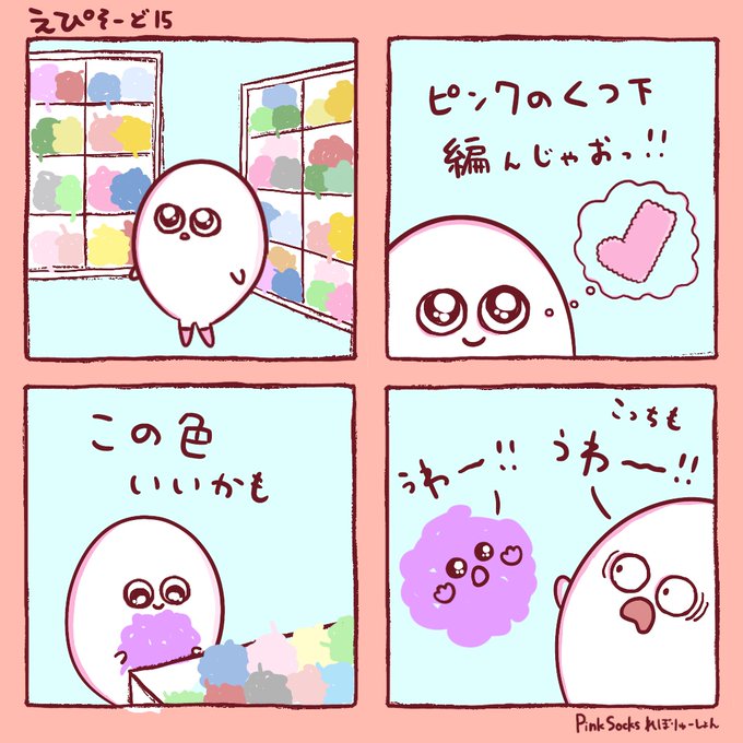 ピンクの靴下がお気に入りのピンキー。手に取ったのはパープルの毛糸。 こんな風に、時には馴染みのある色や場所、食べ物、価値観などから離れて、新しいものにトライするのもいいよね! あなたの目の前に、選択肢は無限にあるんだから。 #4コマ漫画 #イラスト #漫画が読めるハッシュタグ