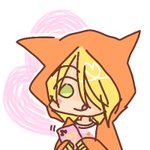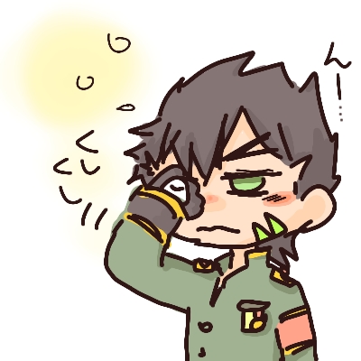 耳あてをして暖かい肉まんを食べているのに寒そうに見えるアタリくんの図 (多分コスチュームのせい) #コンパスお絵描き