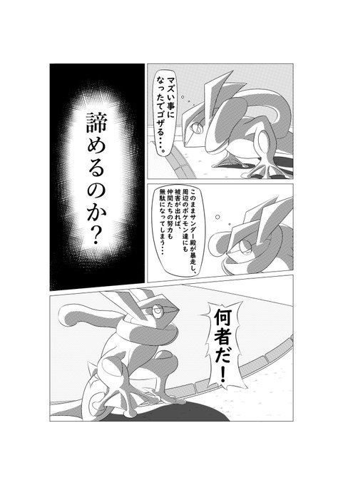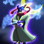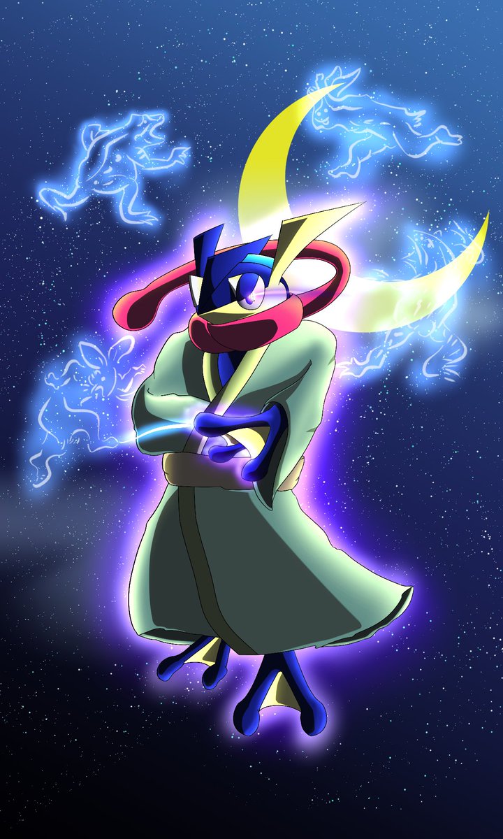 みず/エスパー タイプのゲッコウガ描いてみました。 水を自在に使い、鳥獣戯画を主に攻撃を仕掛けてくるトリッキーなゲッコウガです。 #変幻自在に変身ゲコさん