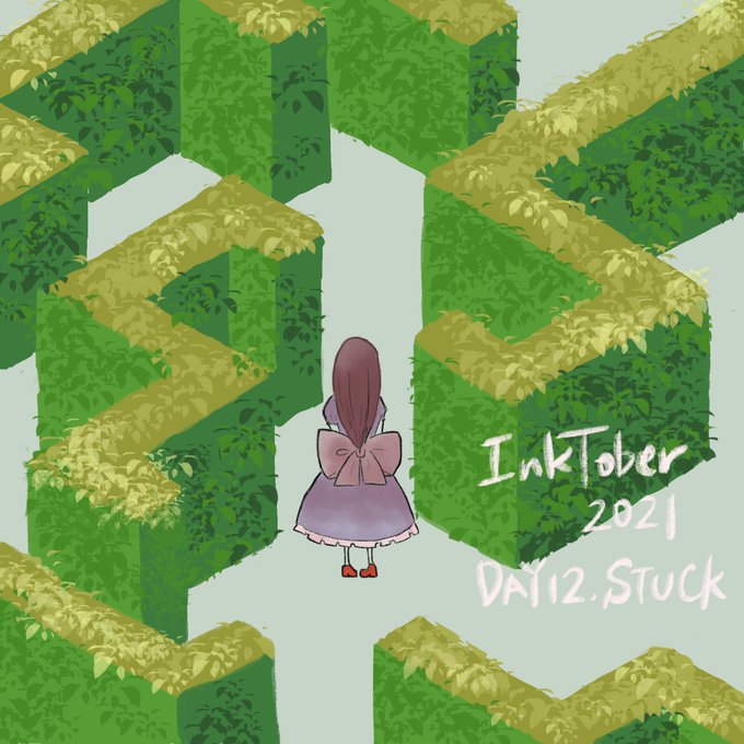 Day12.STUCK/行き詰まる 迷って悩んでいる感じを出したくて後ろ姿にしたんだけど、ちょっとホラーみたいになっちゃったな🤔 #inktober #inktober2021 #Inktober2021day12 #inktober2021stuck